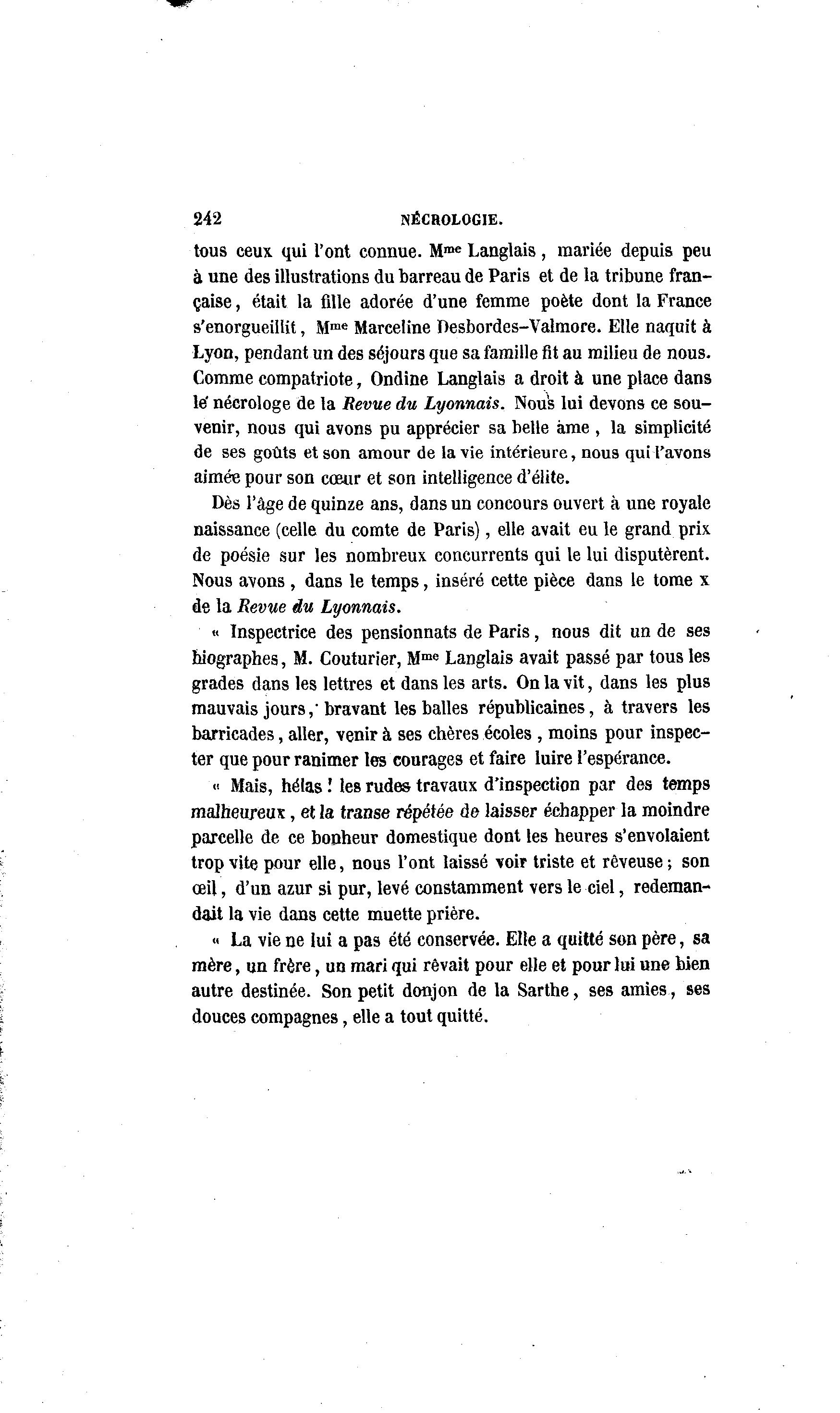 biographes, M. Couturier, Mme Langlais avait passé par tous les
