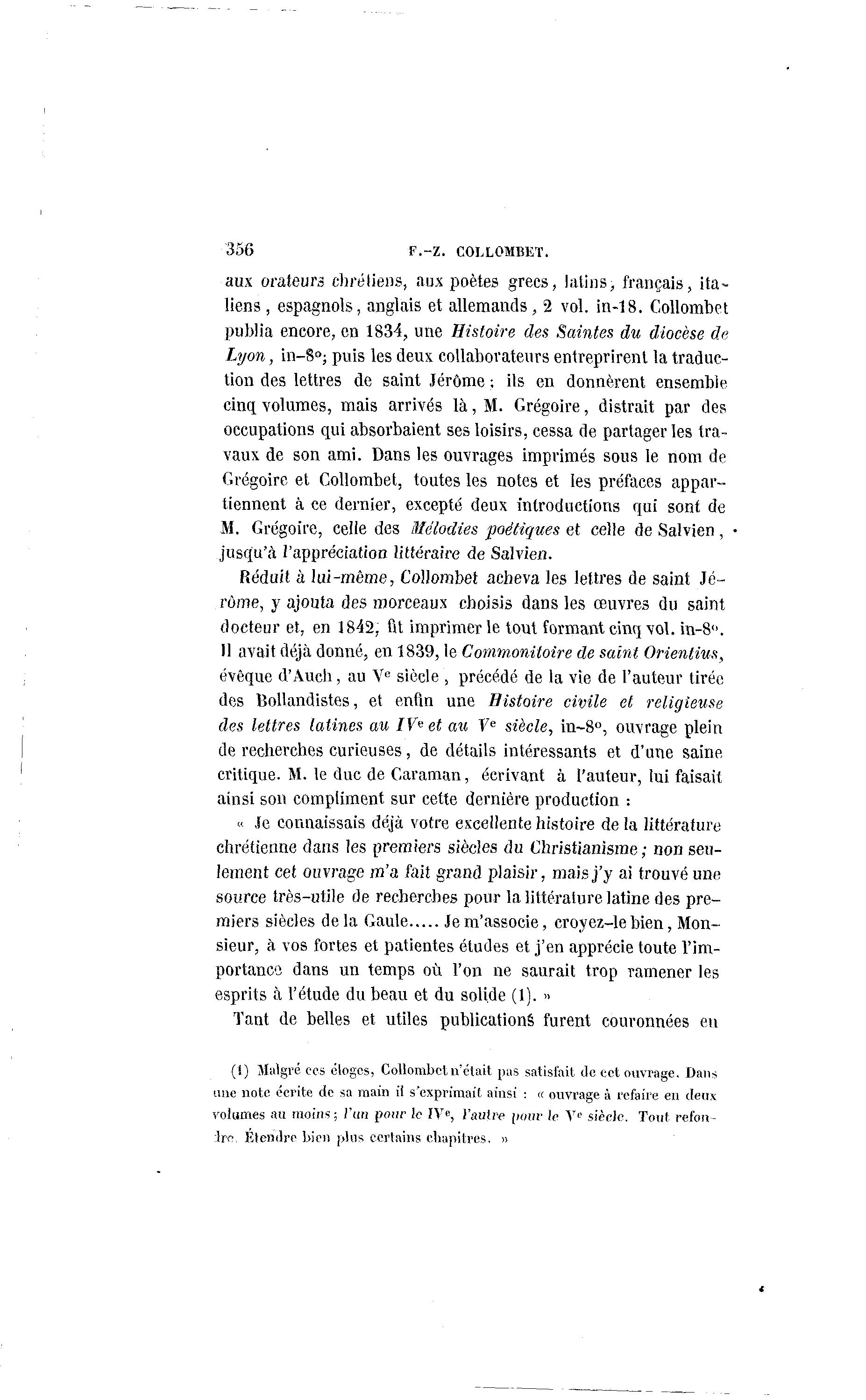 (I) Malgré ces éloges, Collombet n'était pas satisfait de cet ouvrage. Dans