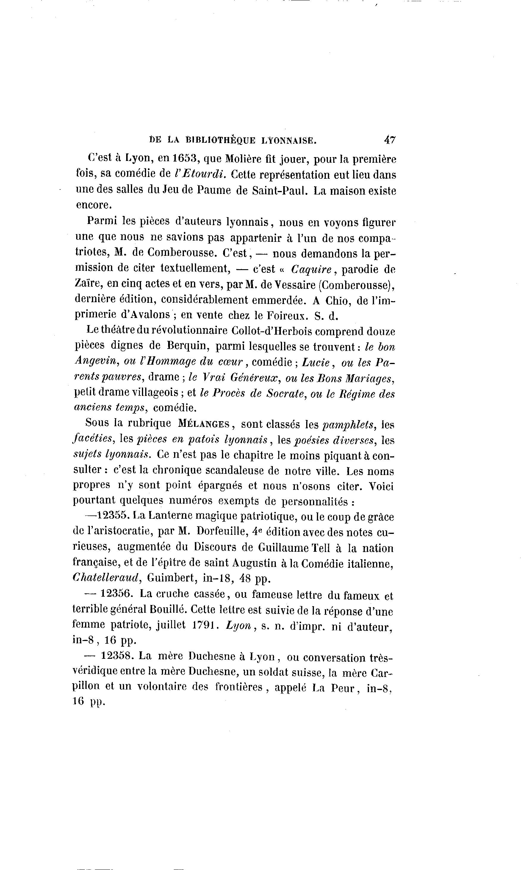 DE LA BIBLIOTHÈQUE LYONNAISE. 47