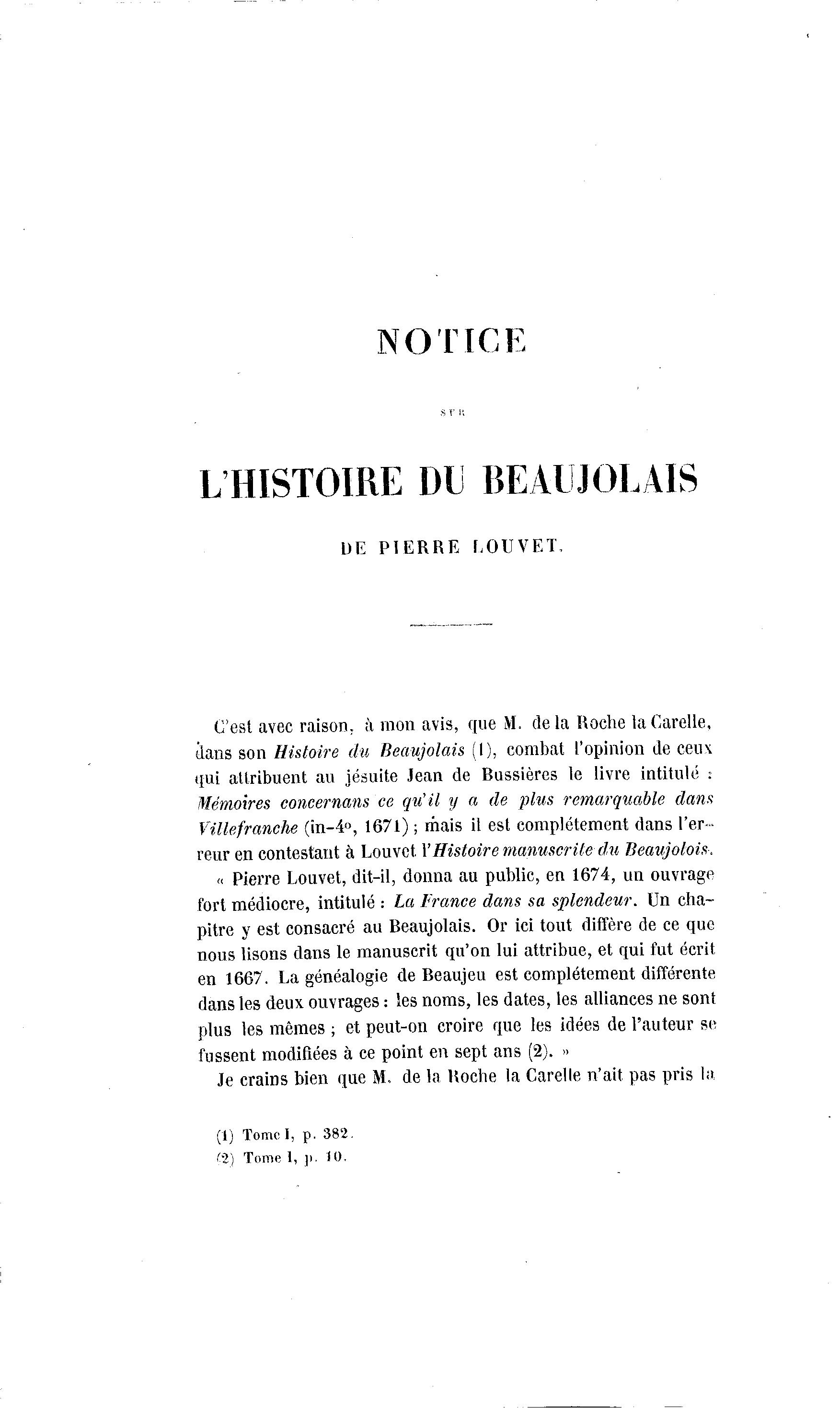 reur en contestant à Louvct Y Histoire manuscrite du Beaujolois.