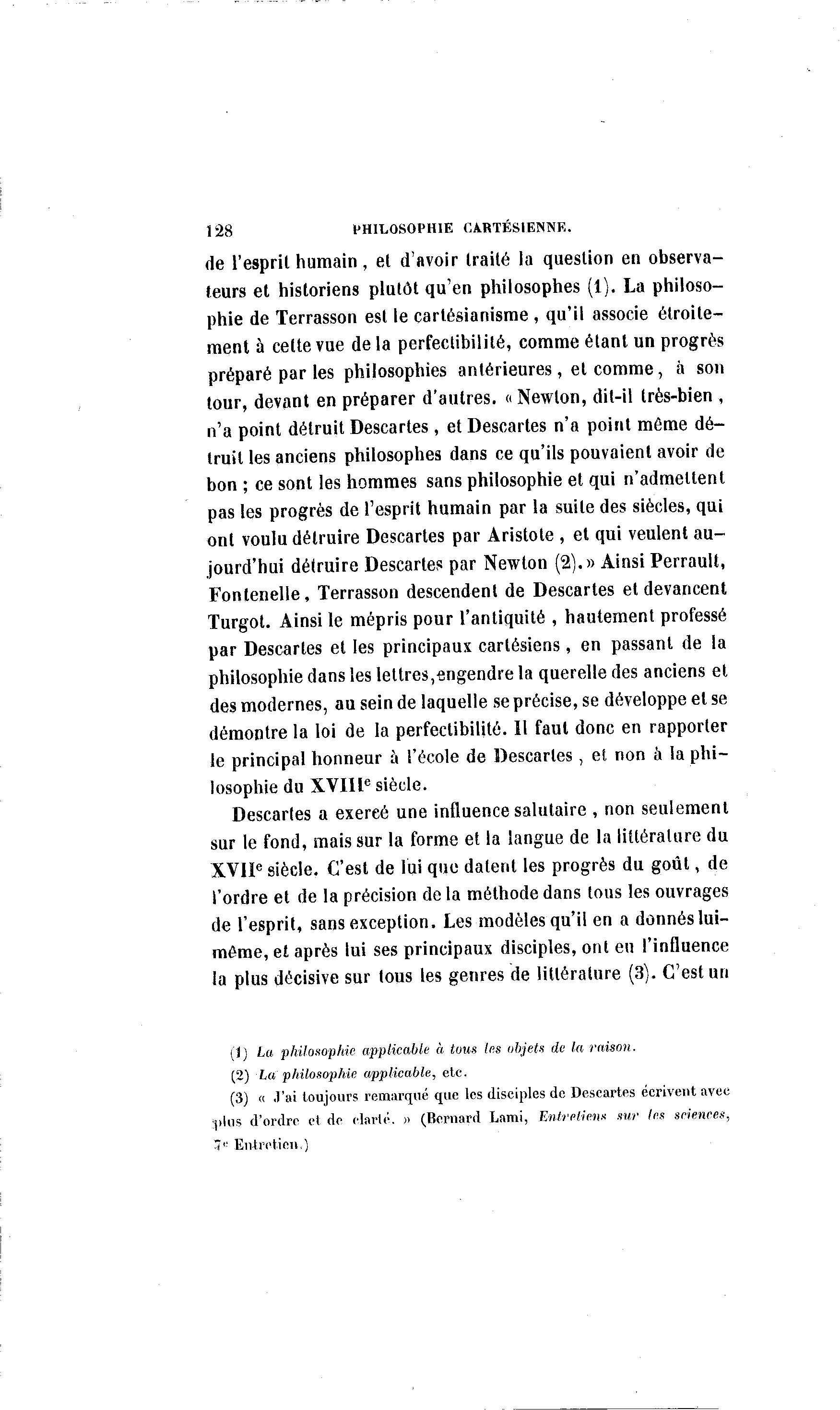 (3) « J'ai toujours remarqué que les disciples de Descartes écrivent avec