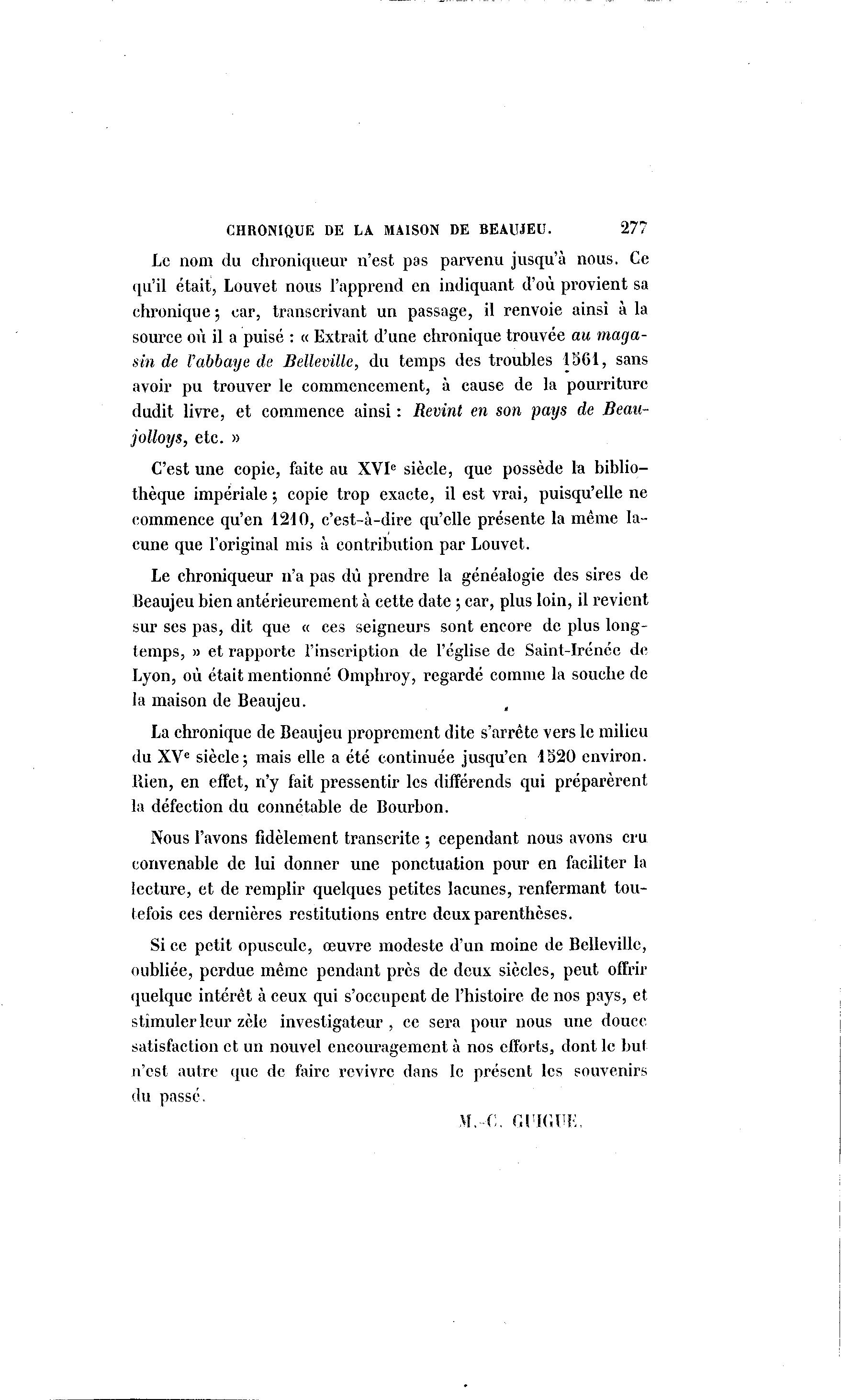 La chronique de Beaujeu proprement dite s'arrête vers le milieu