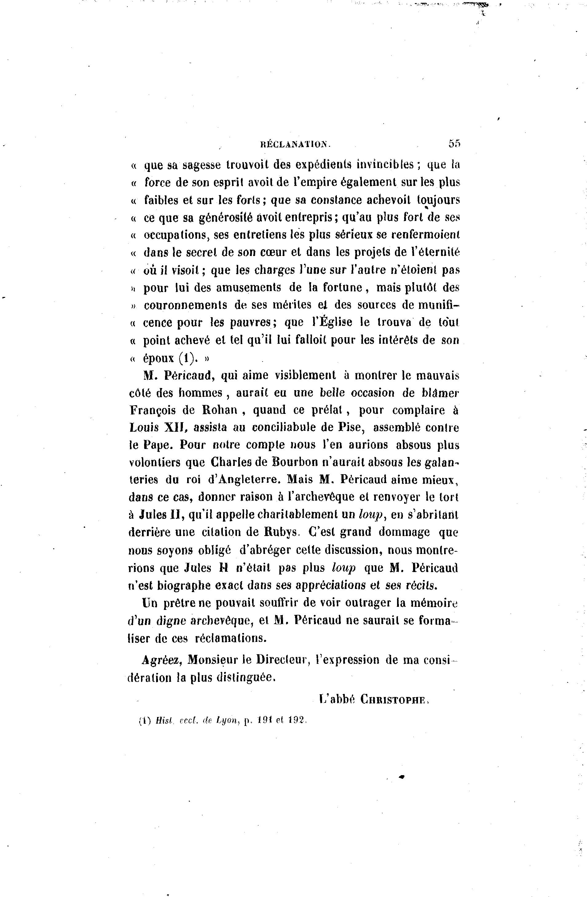 d'un digne archevêque, et M. Péricaud ne saurait se forma-