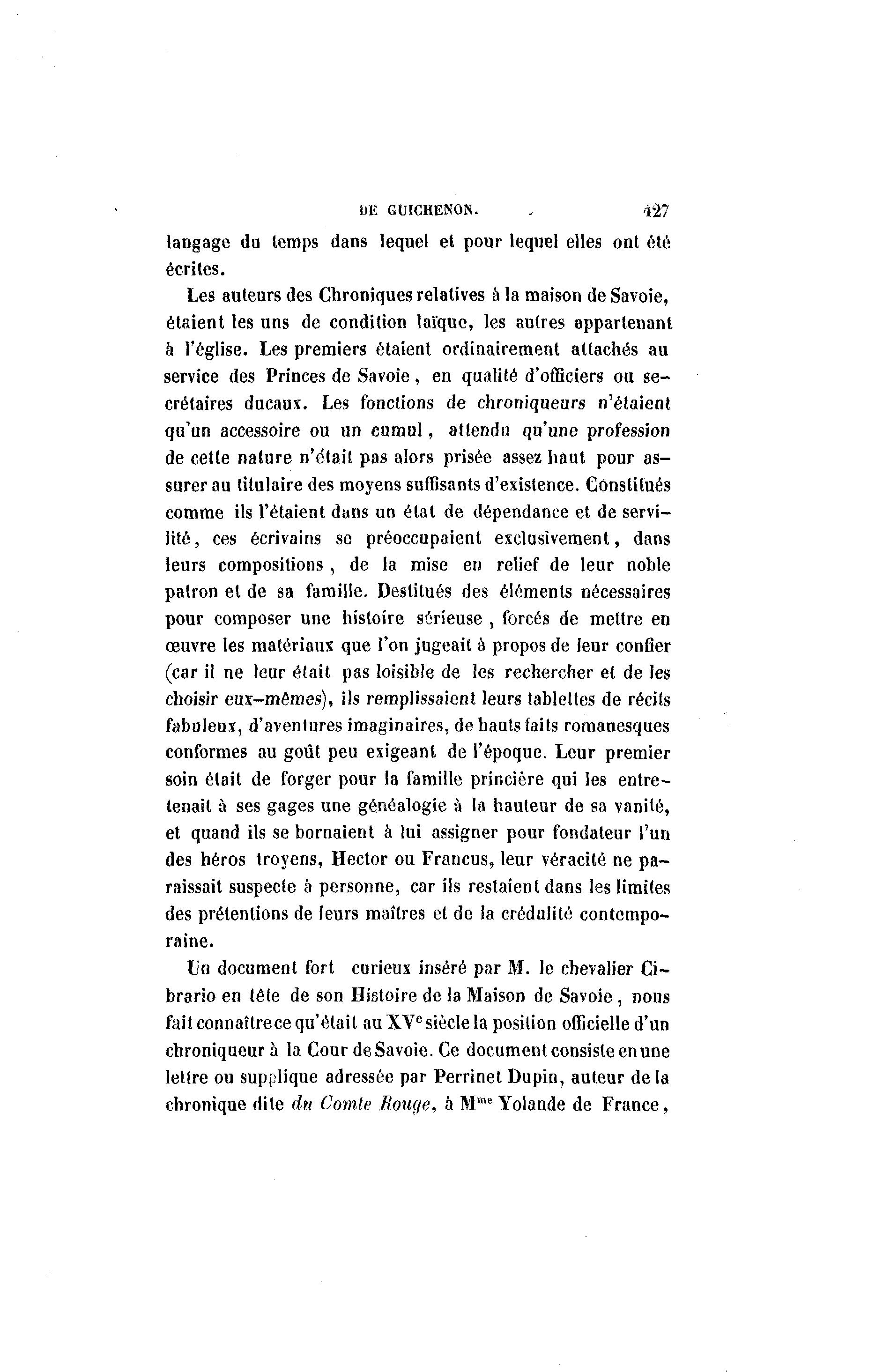 chroniqueur à la Cour de Savoie. Ce document consiste en une