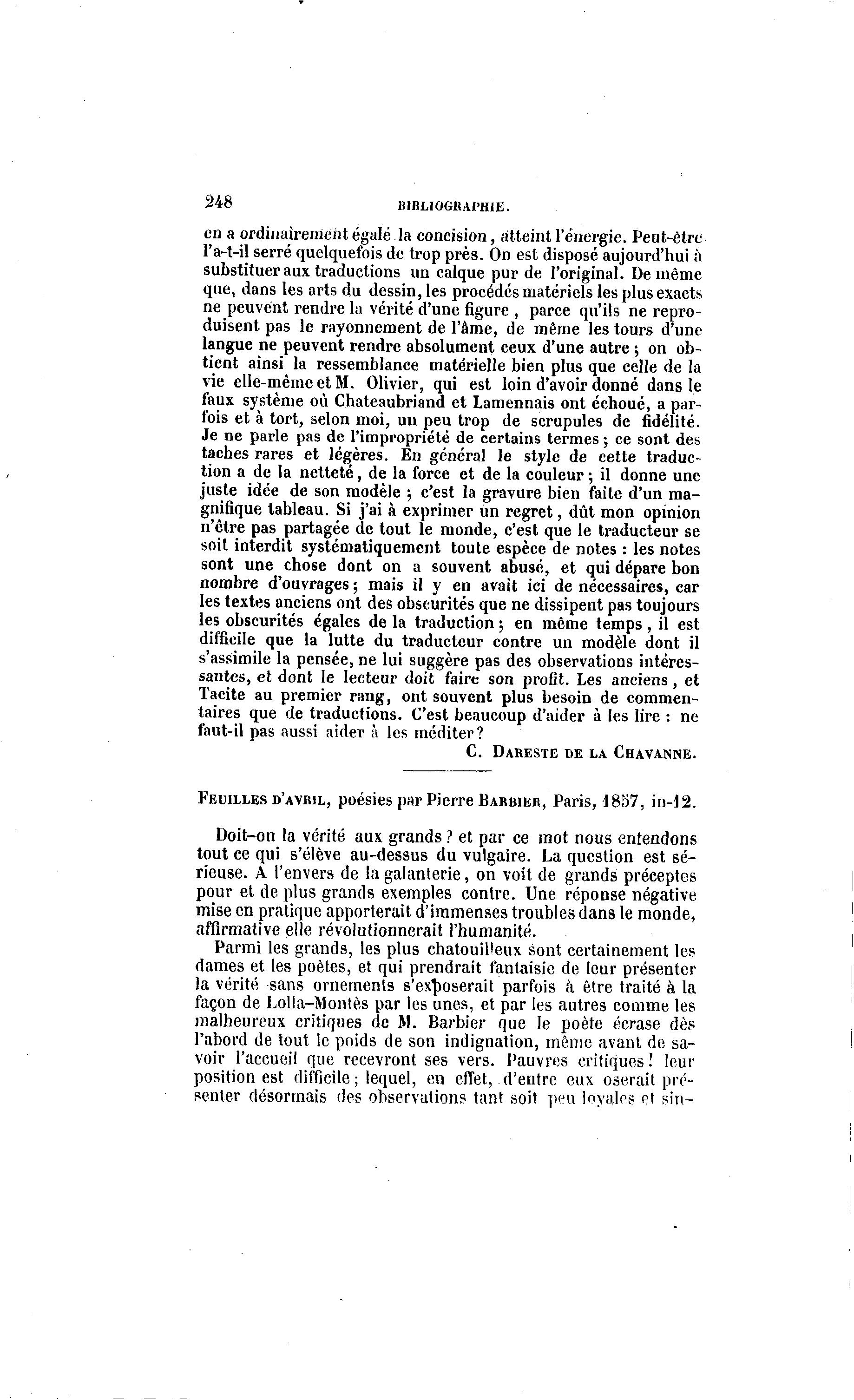 FEUILLES D'AVRIL, poésies par Pierre BARBIER, Paris, 1857, in-12.