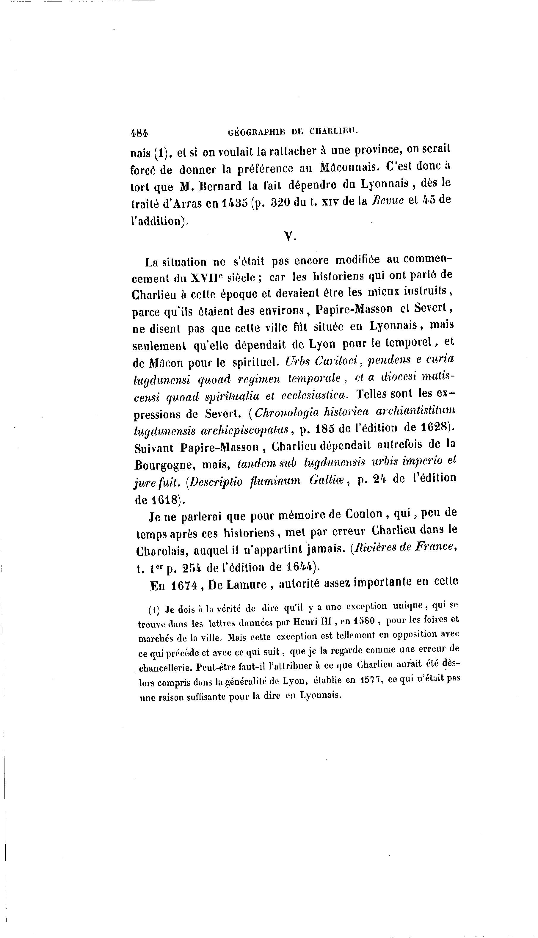 temps après ces historiens, met par erreur Charlieu dans le