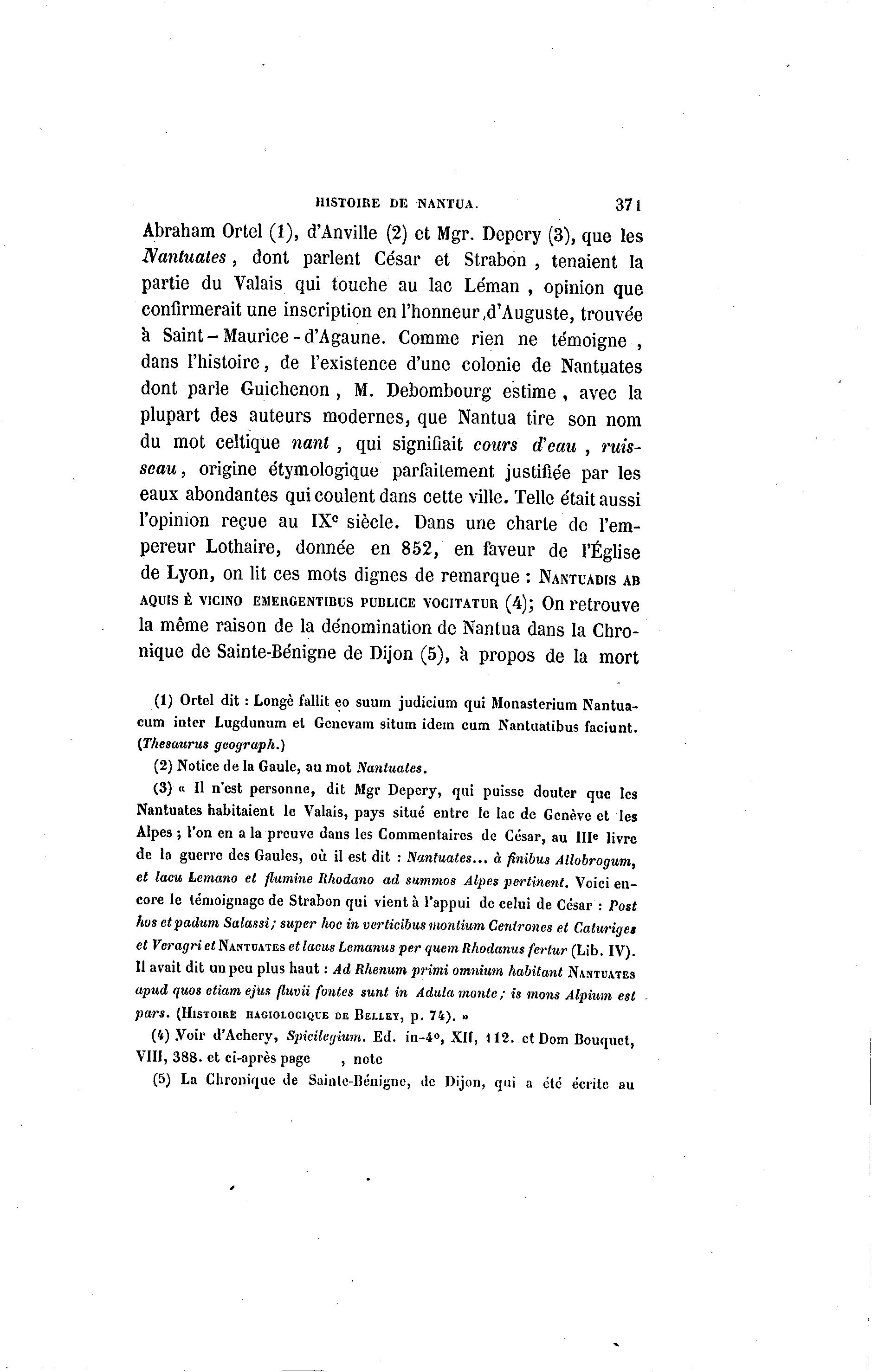 de la guerre des Gaules, où il est dit : Nantuates... à finibus Allobrogum,