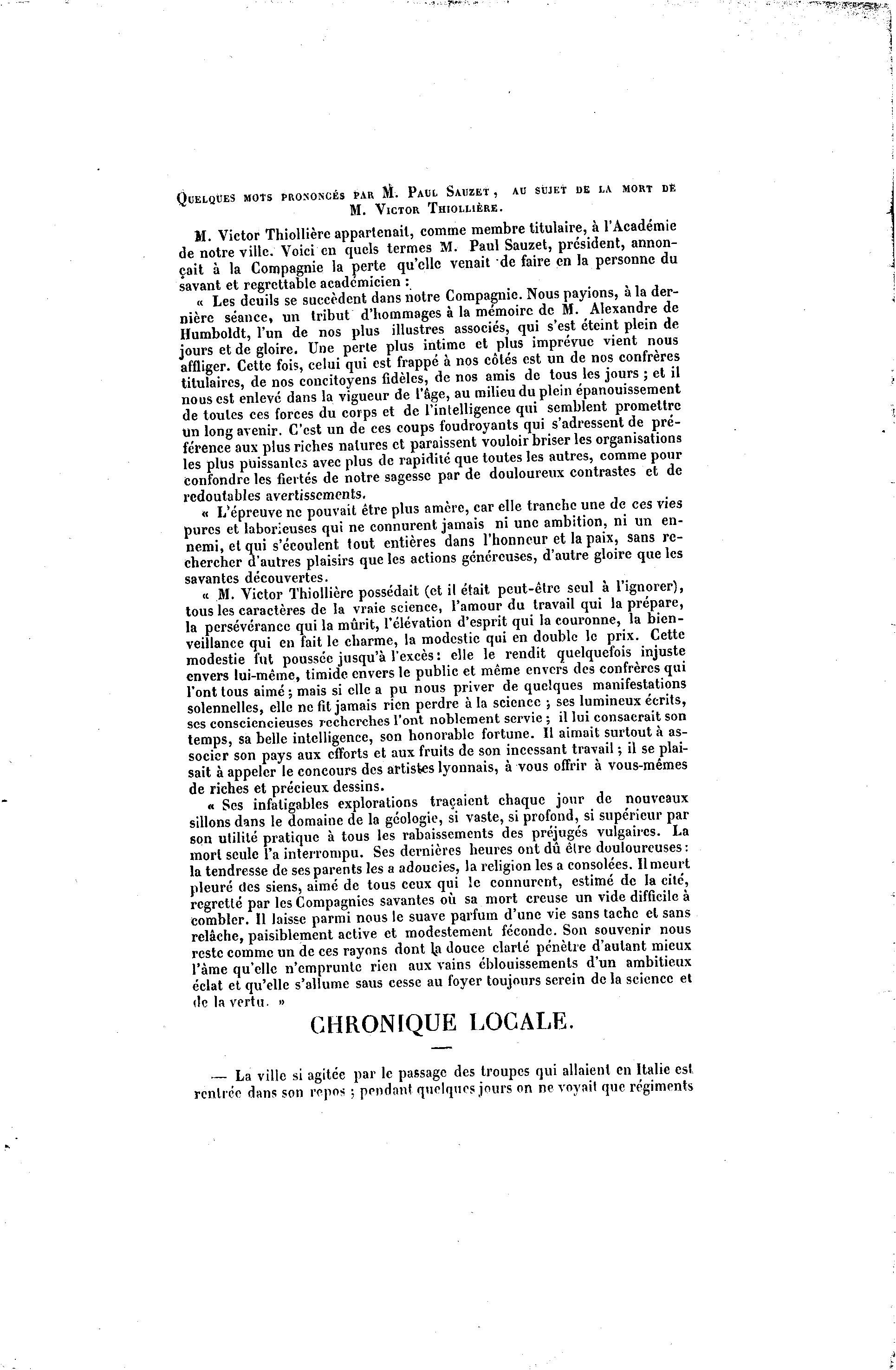 QUELQUES MOTS PRONONCÉS PAR M. PAUL SAUZET , AU SUJET DE LA MORT DÉ