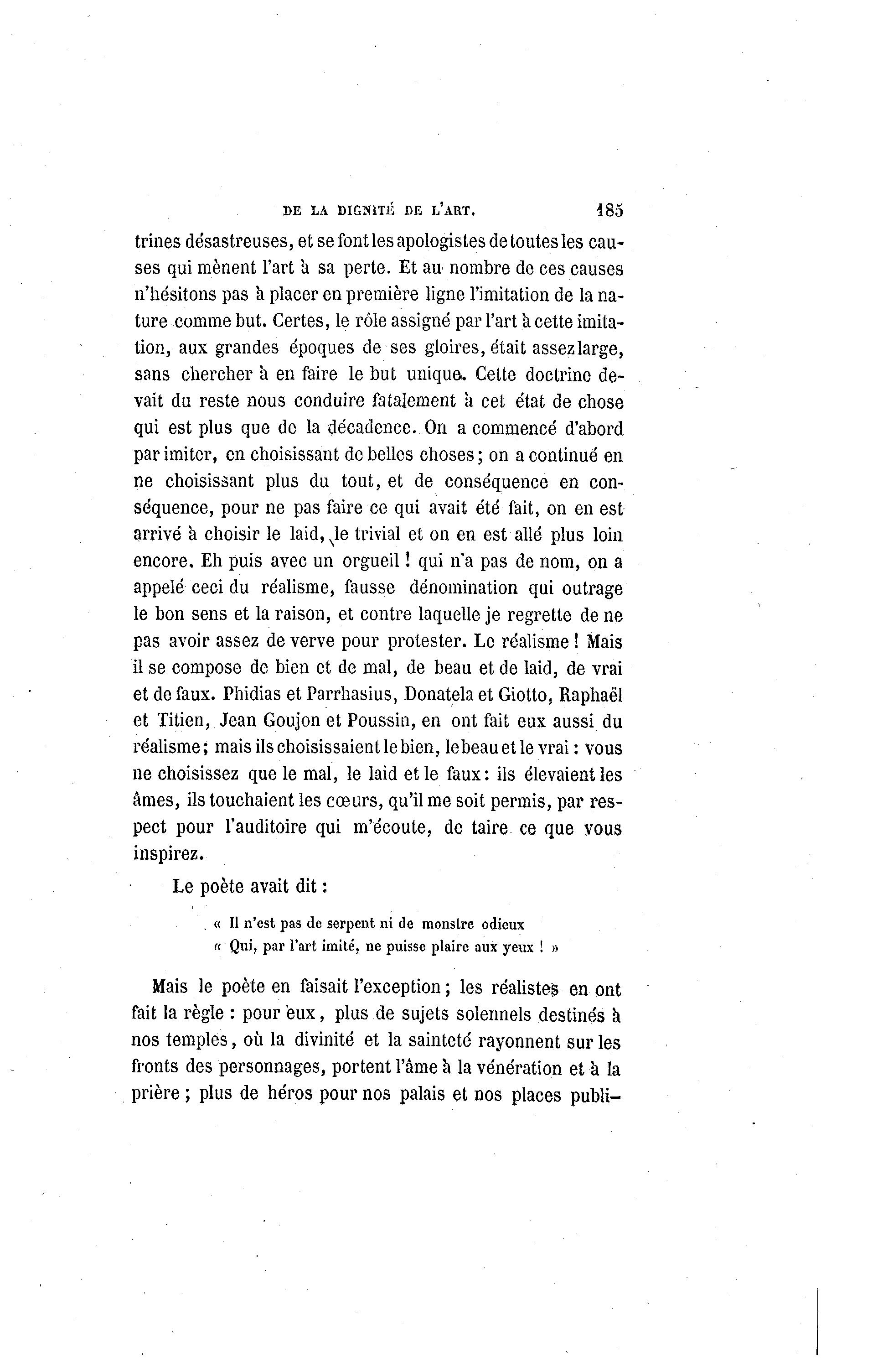 DE LA DIGNITÉ DE L'ART. 185