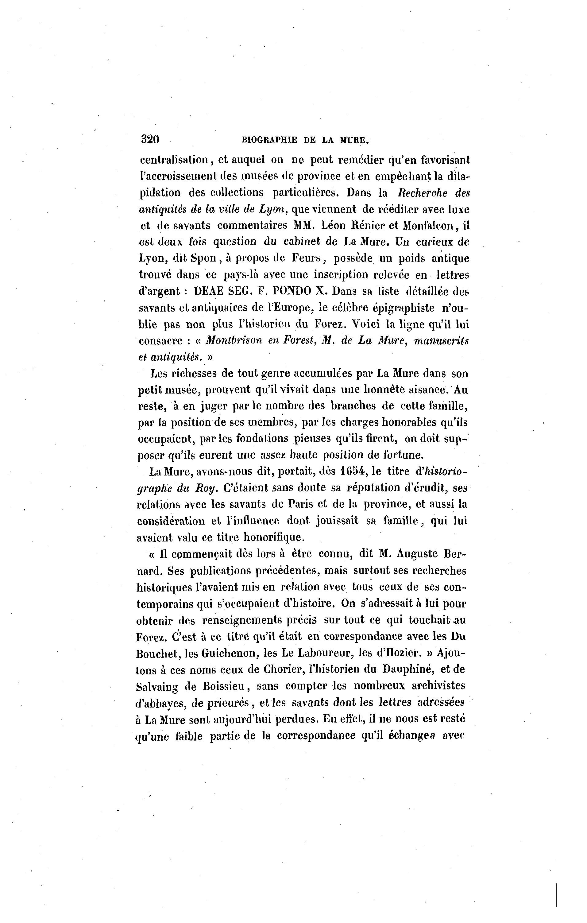 consacre : « Montbrison en Forest, M. de La Mure, manuscrits