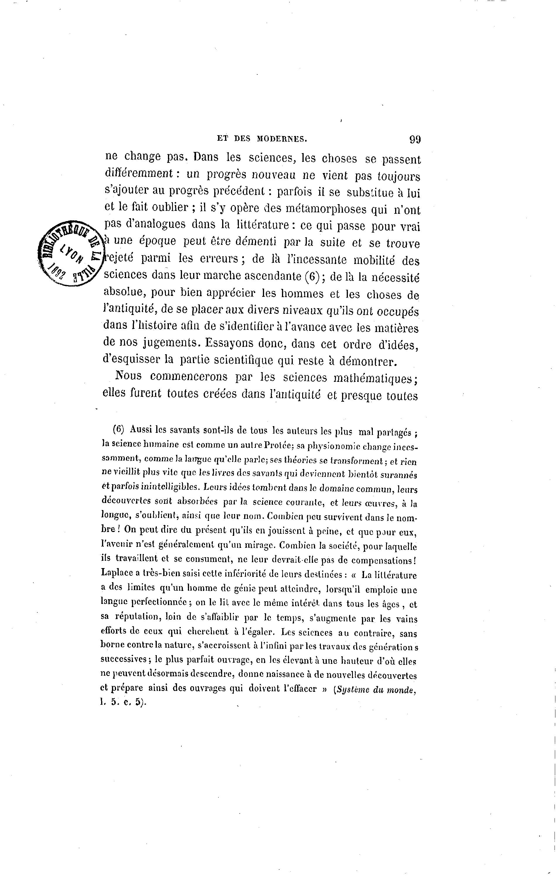 Laplace a très-bien saisi cette infériorité de leurs destinées : « La littérature