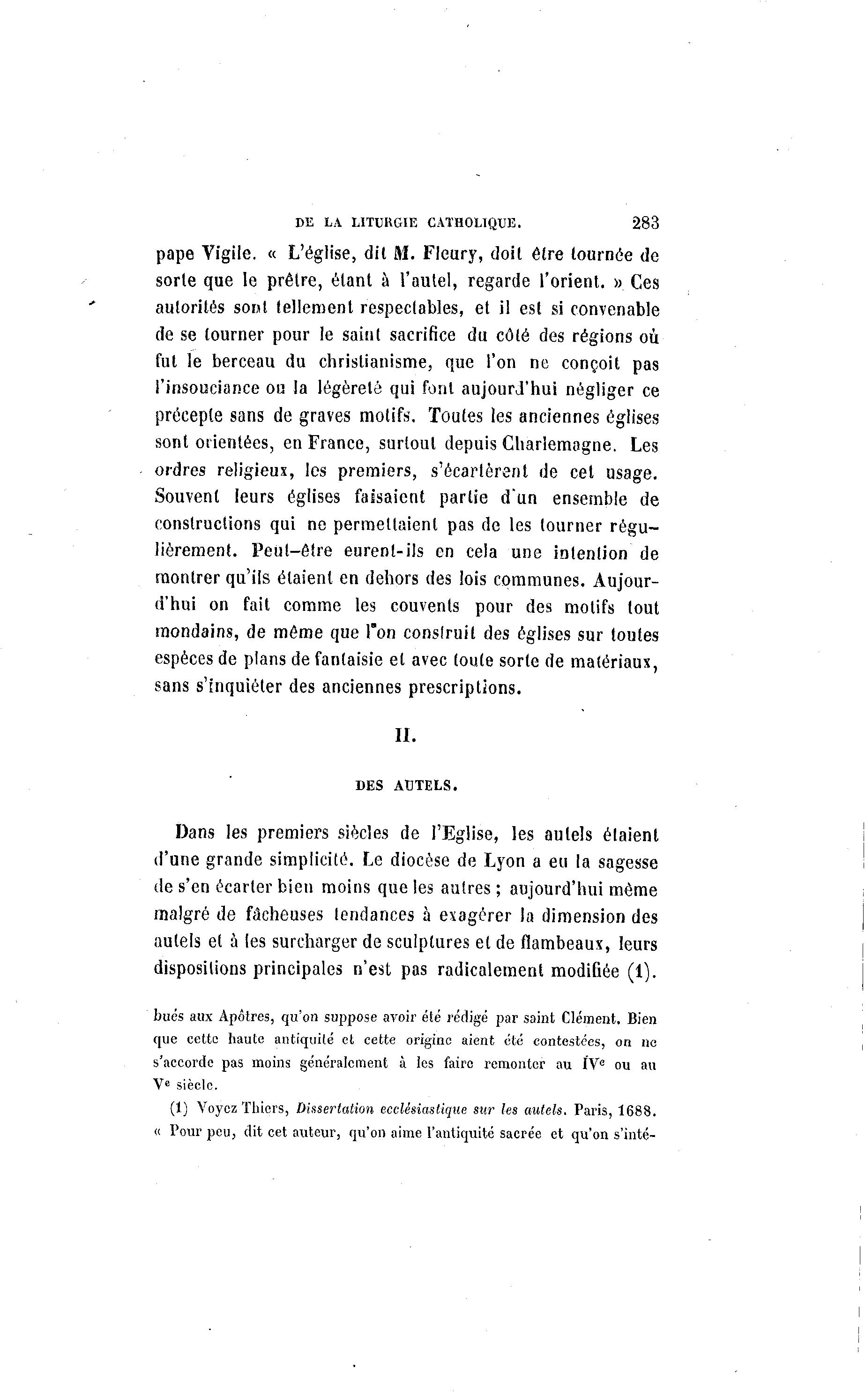 (1) Voyez Thiers, Dissertation ecclésiastique sur les autels. Paris, 1688.