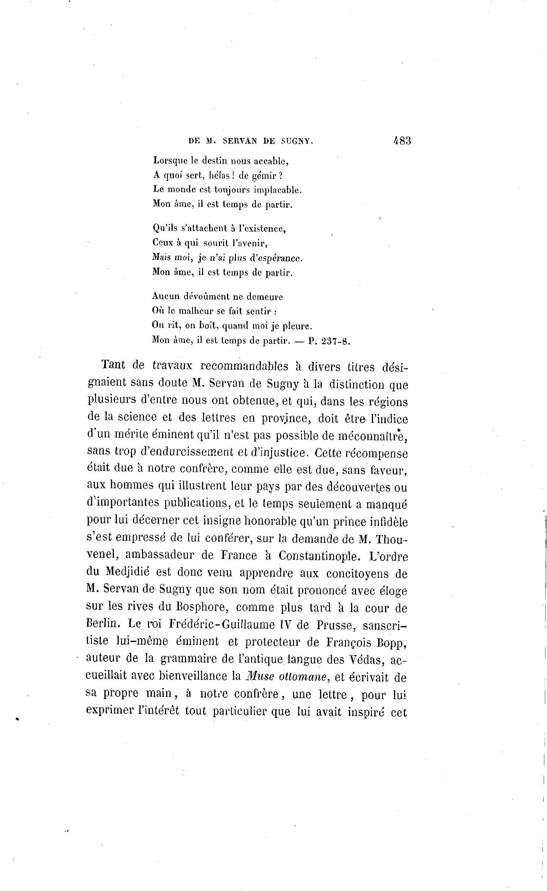 M. Servan de- Sugny que son nom était prononcé avec éloge