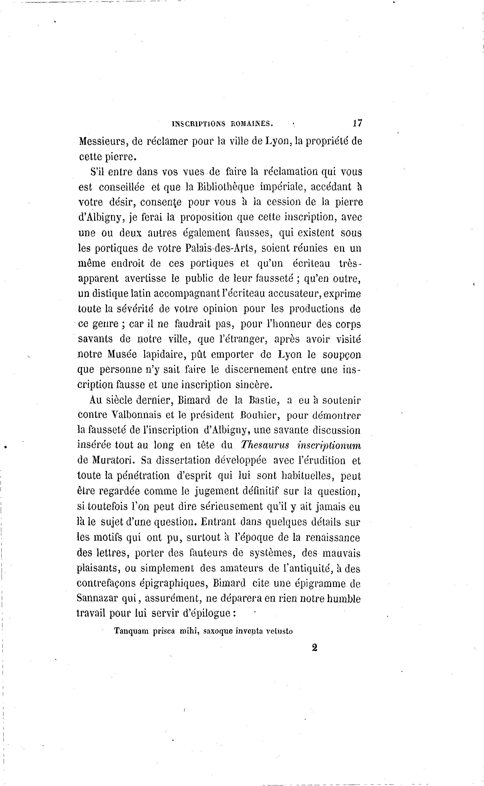 la fausseté de l'inscription d'Albigny, une savante discussion