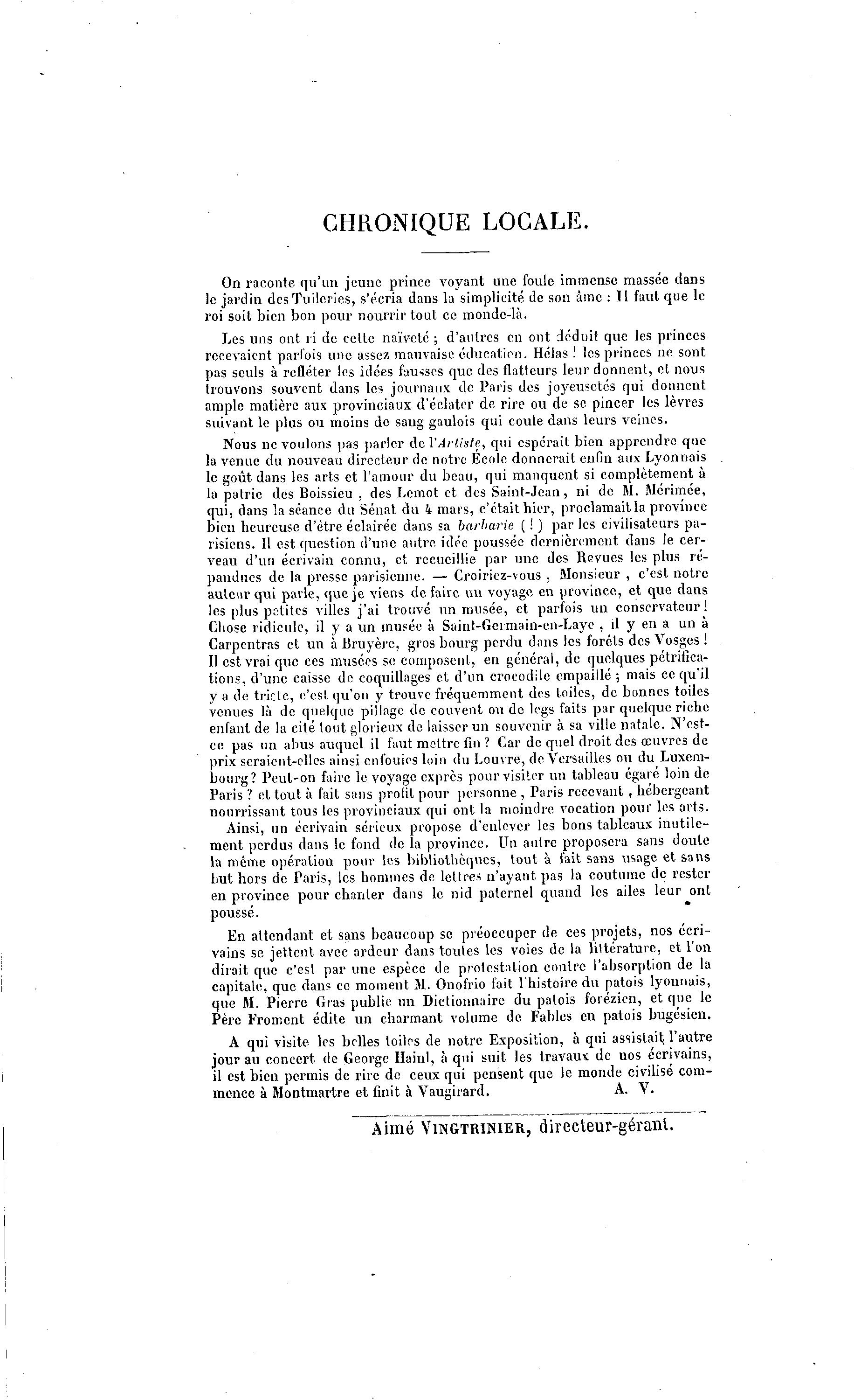 Aimé VINGTRINIER, directeur-gérant.
