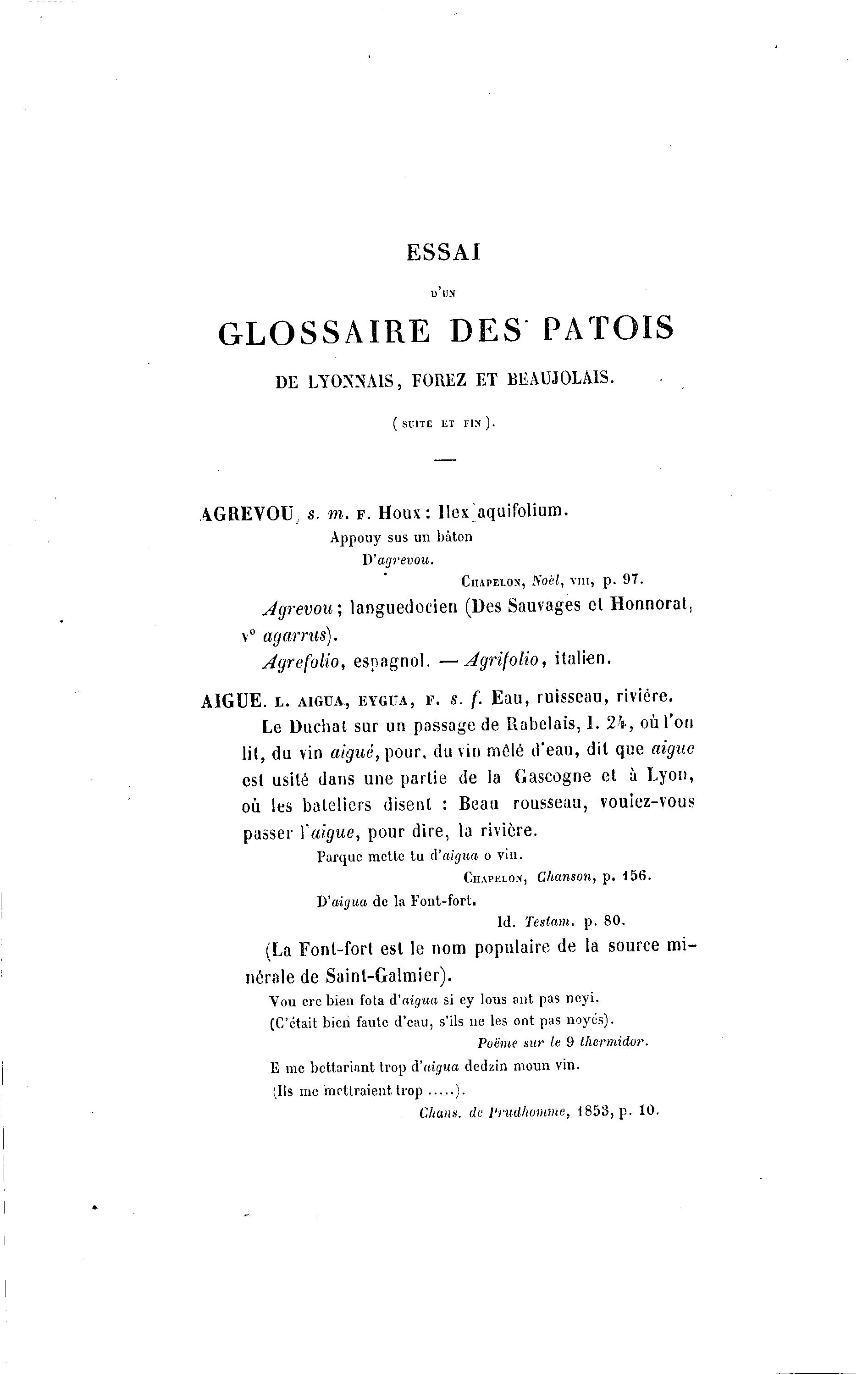 GLOSSAIRE DES PATOIS