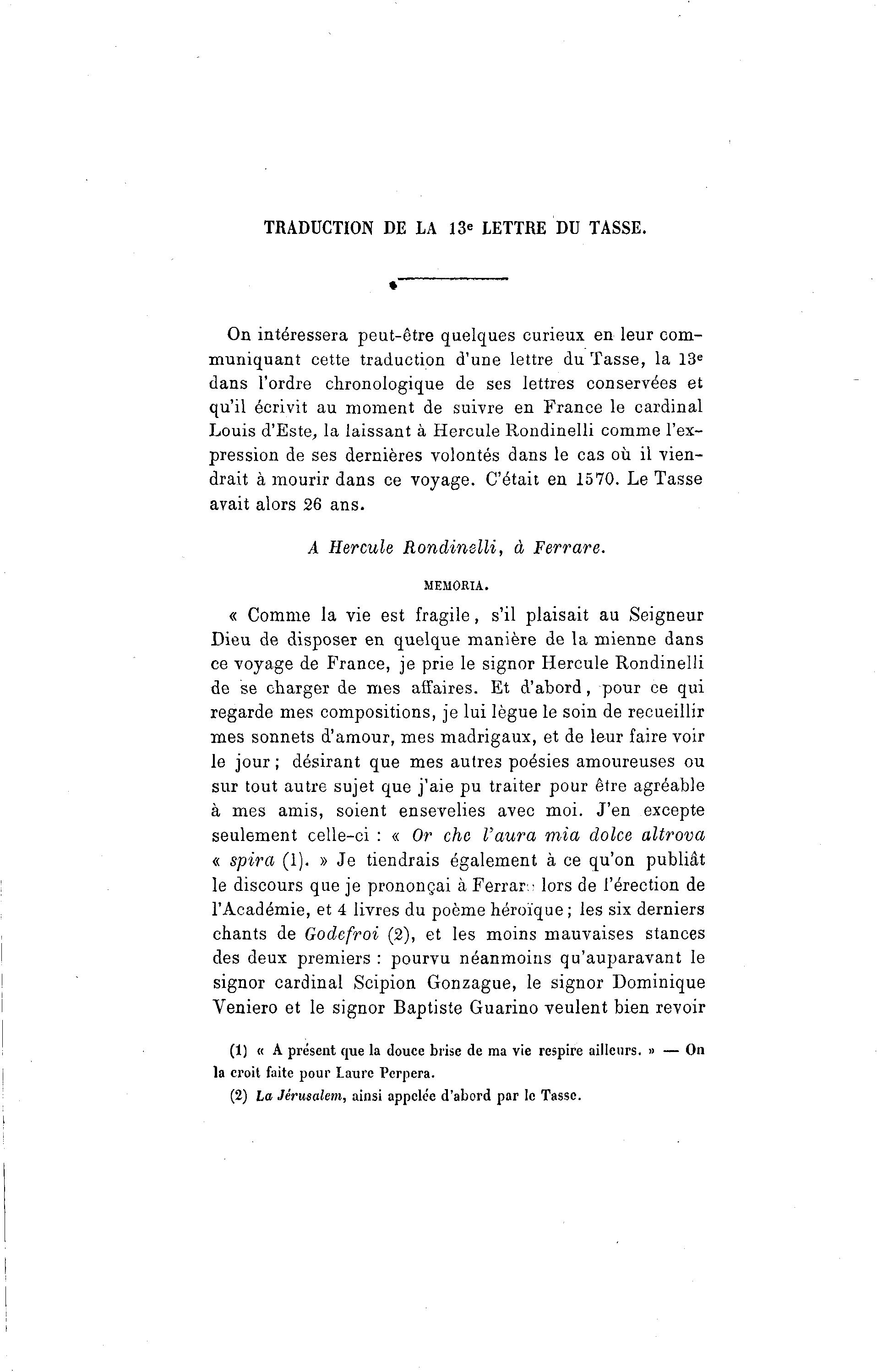 TRADUCTION DE LA 13« LETTRE DU TASSE.