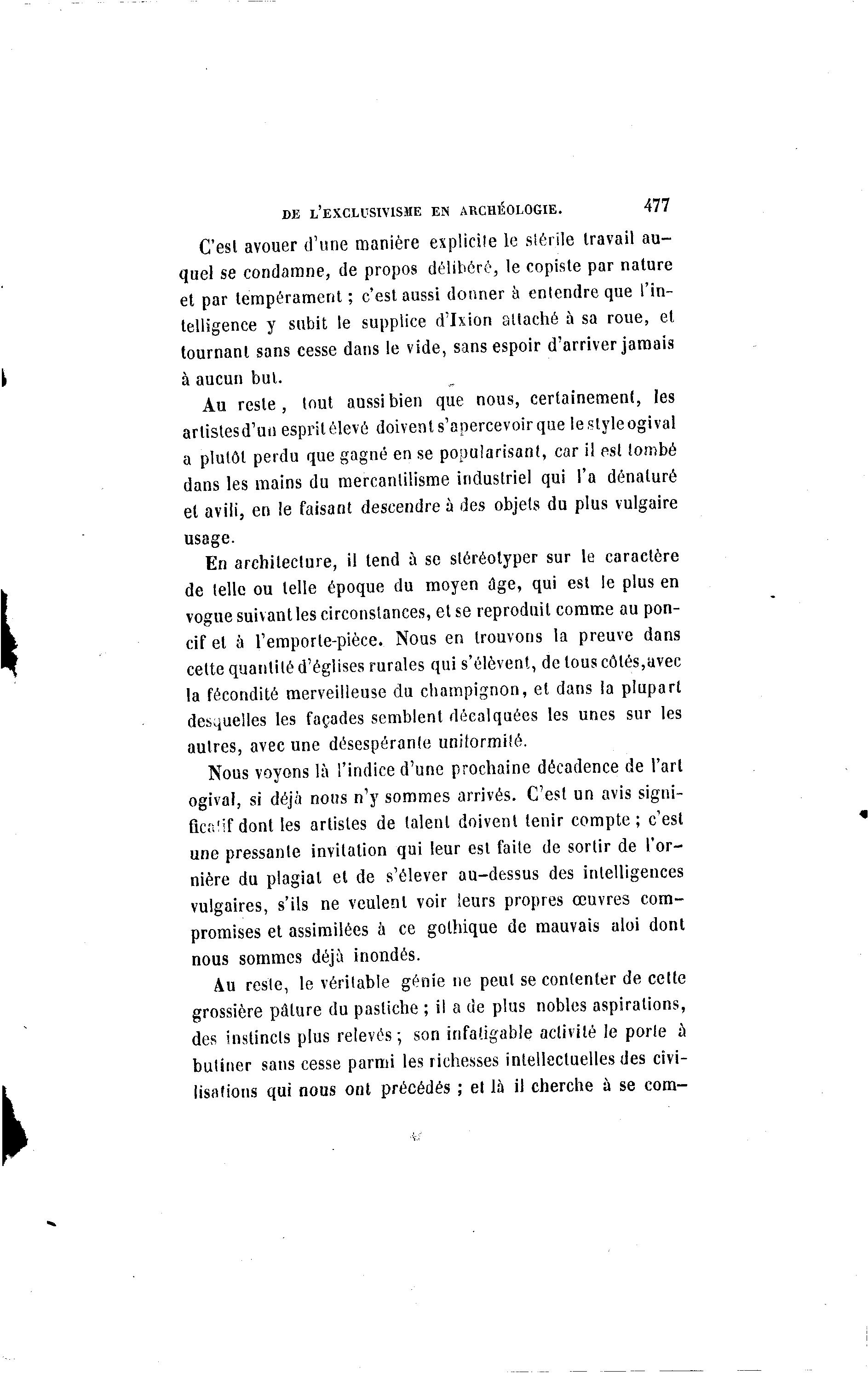 DE L'EXCLUSIVISME EN ARCHÉOLOGIE. 477