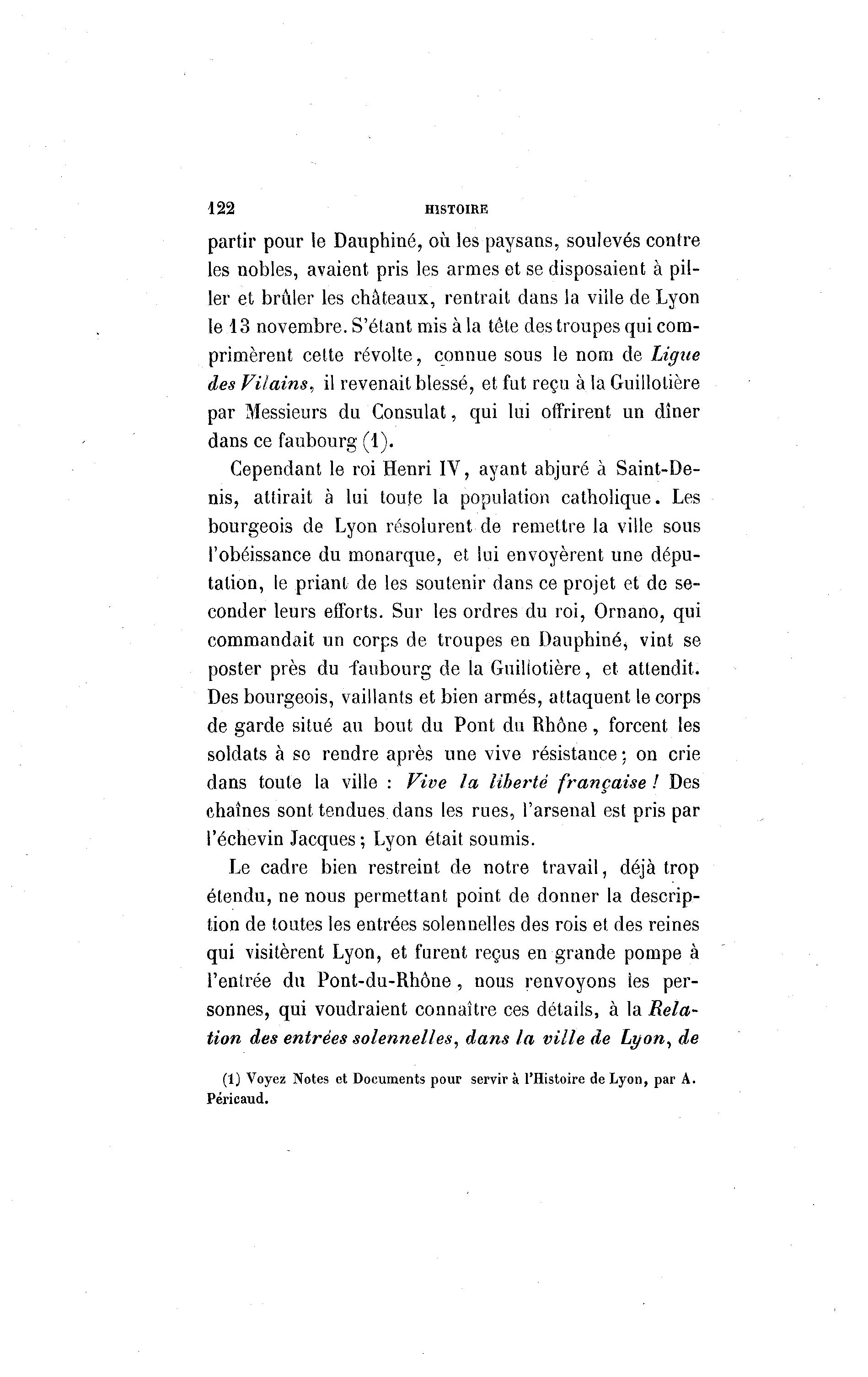 ler et brûler les châteaux, rentrait dans la ville de Lyon