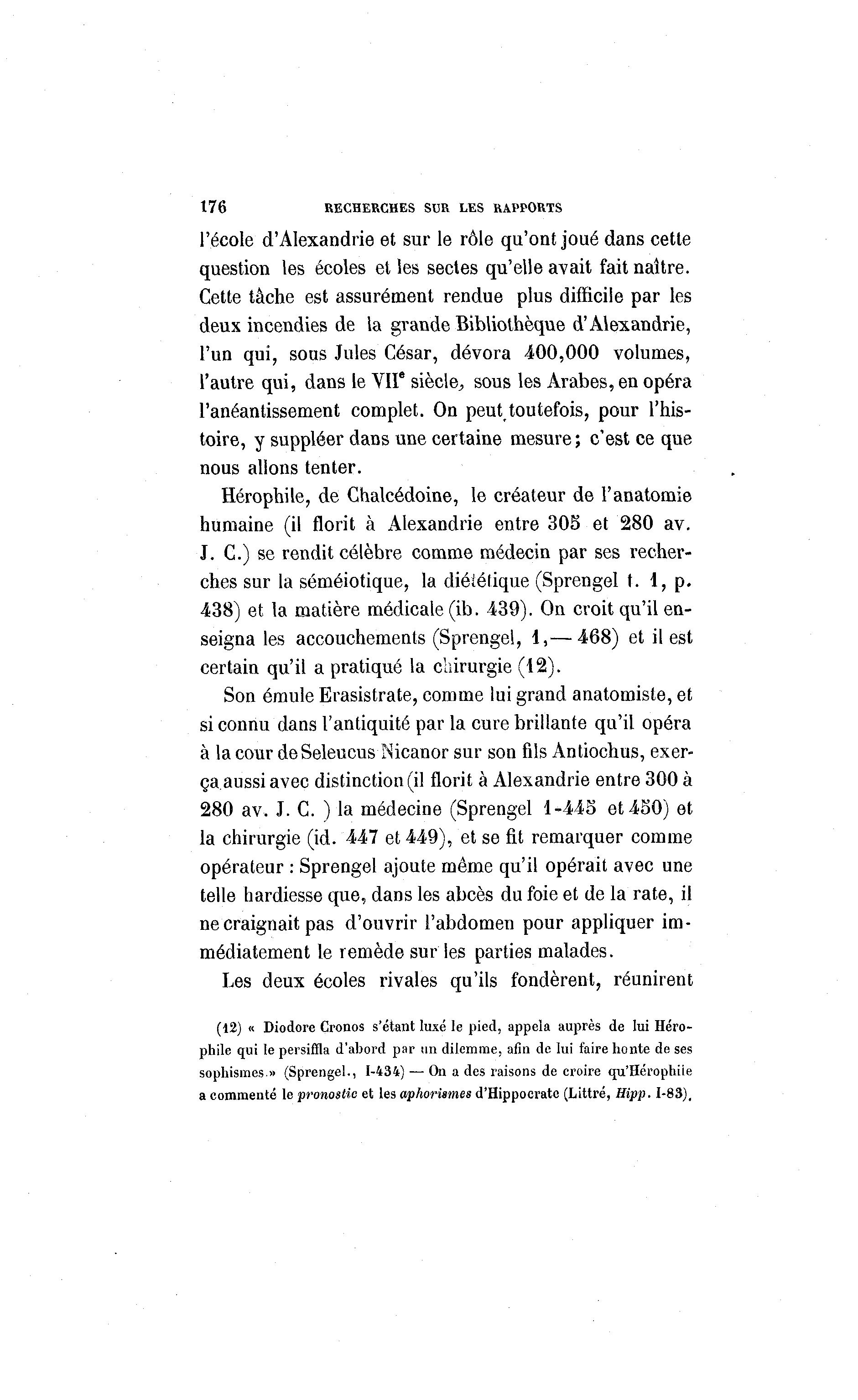 280 av. J. C. ) la médecine (Sprengel 1-445 et 450) et