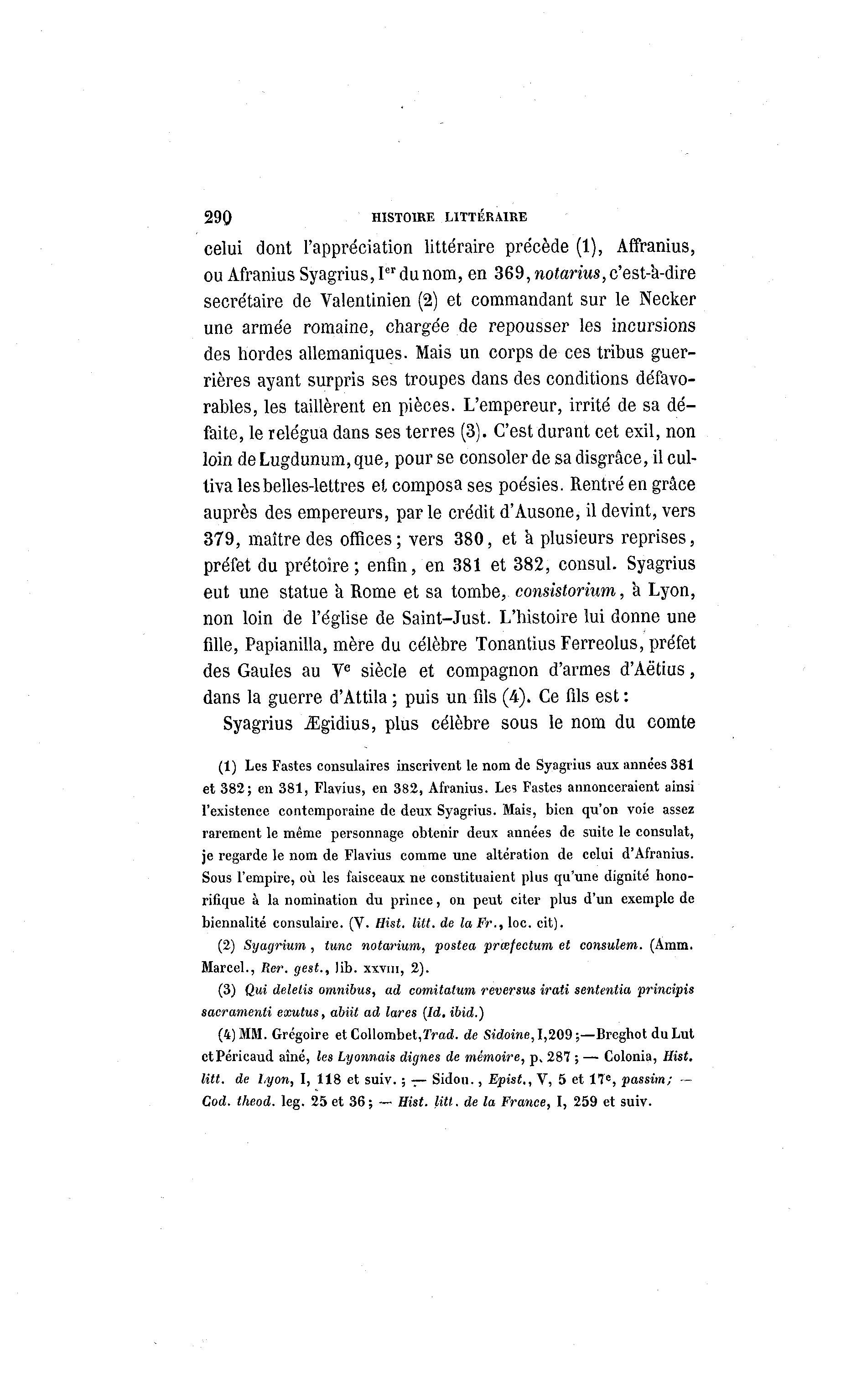 litt. de Lyon, I, 118 et suiv. ; — Sidou., Epist,, V, 5 et 17 e , passim; —