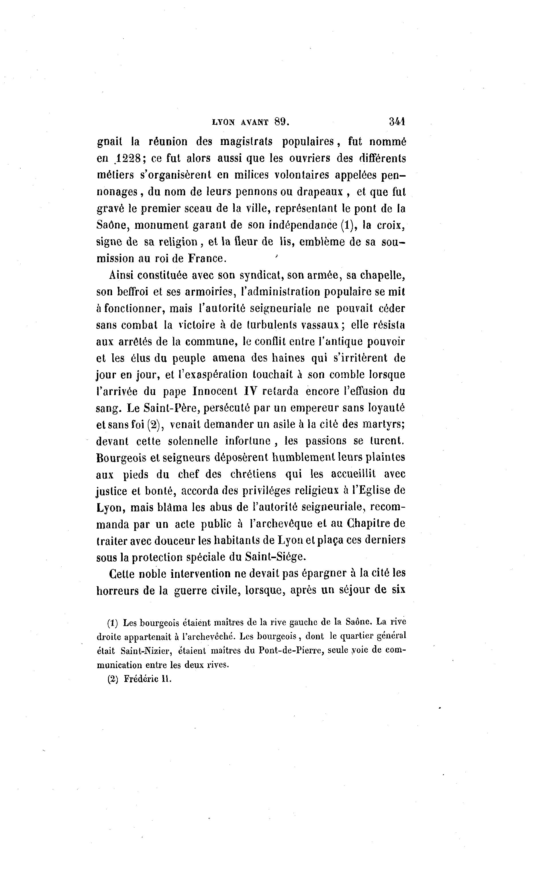 était Saint-Nizier, étaient maîtres du Pont-de-Pierre, seule voie de com-