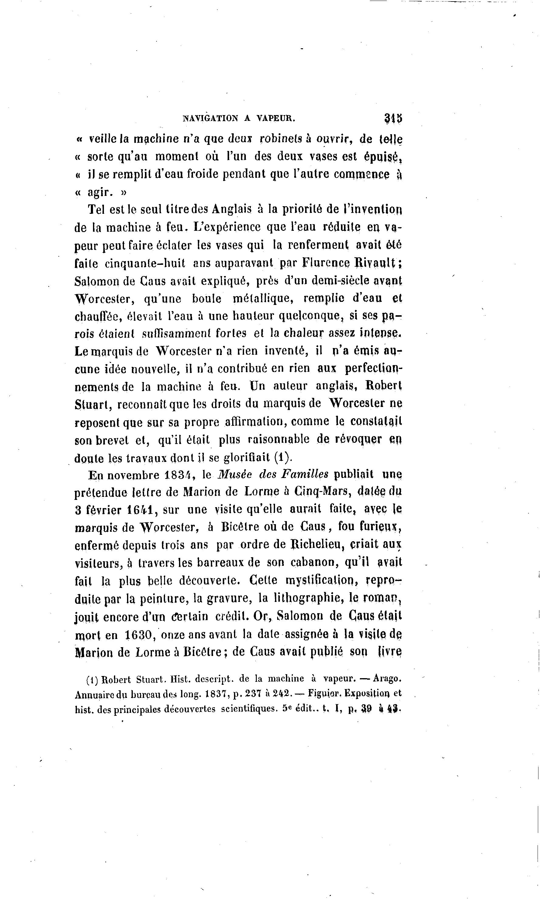 (1) Robert Stuart. Hist. dcscript. de la machine à vapeur.—Arago.