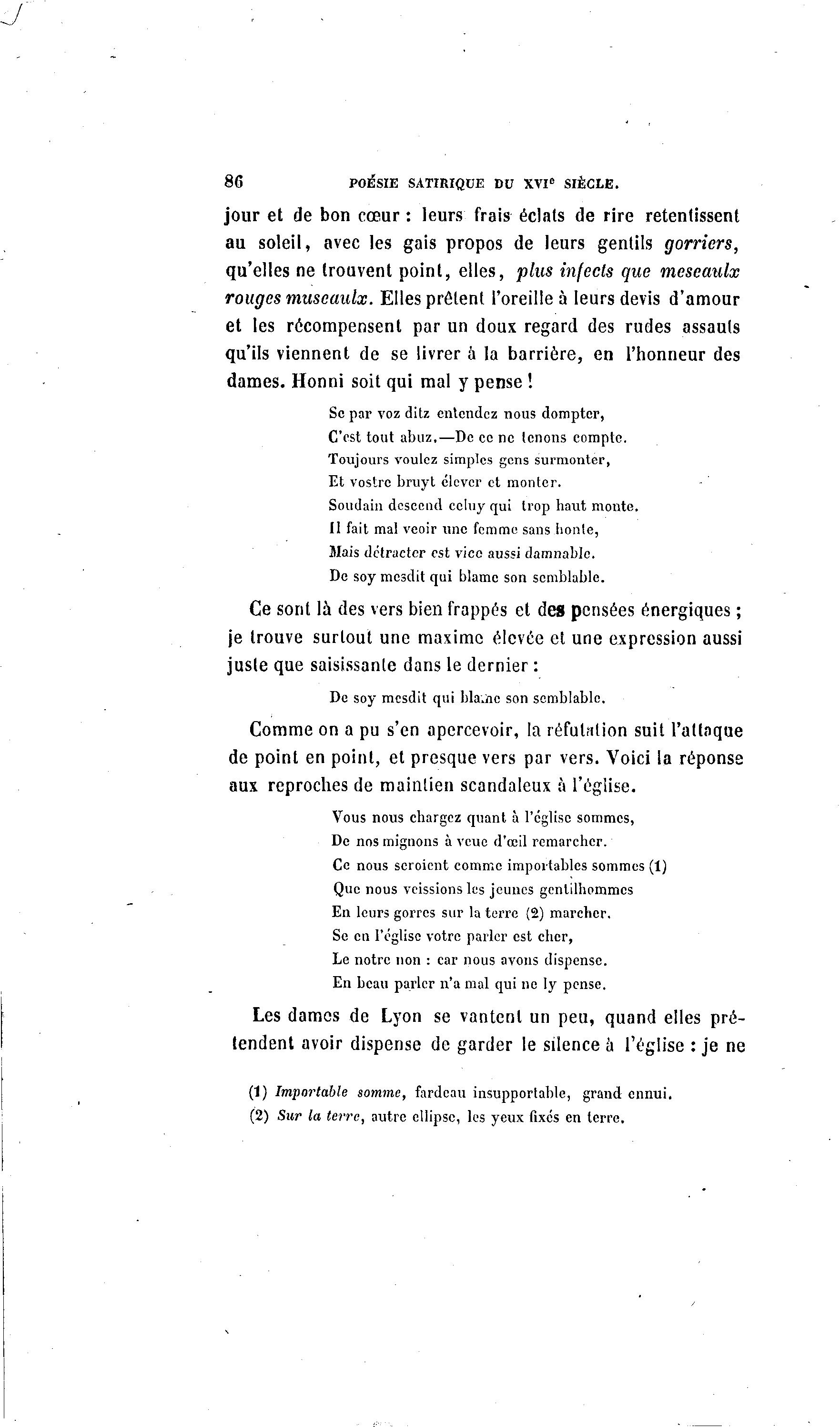 86 POÉSIE SATIRIQUE DU XVI e SIÈCLE.
