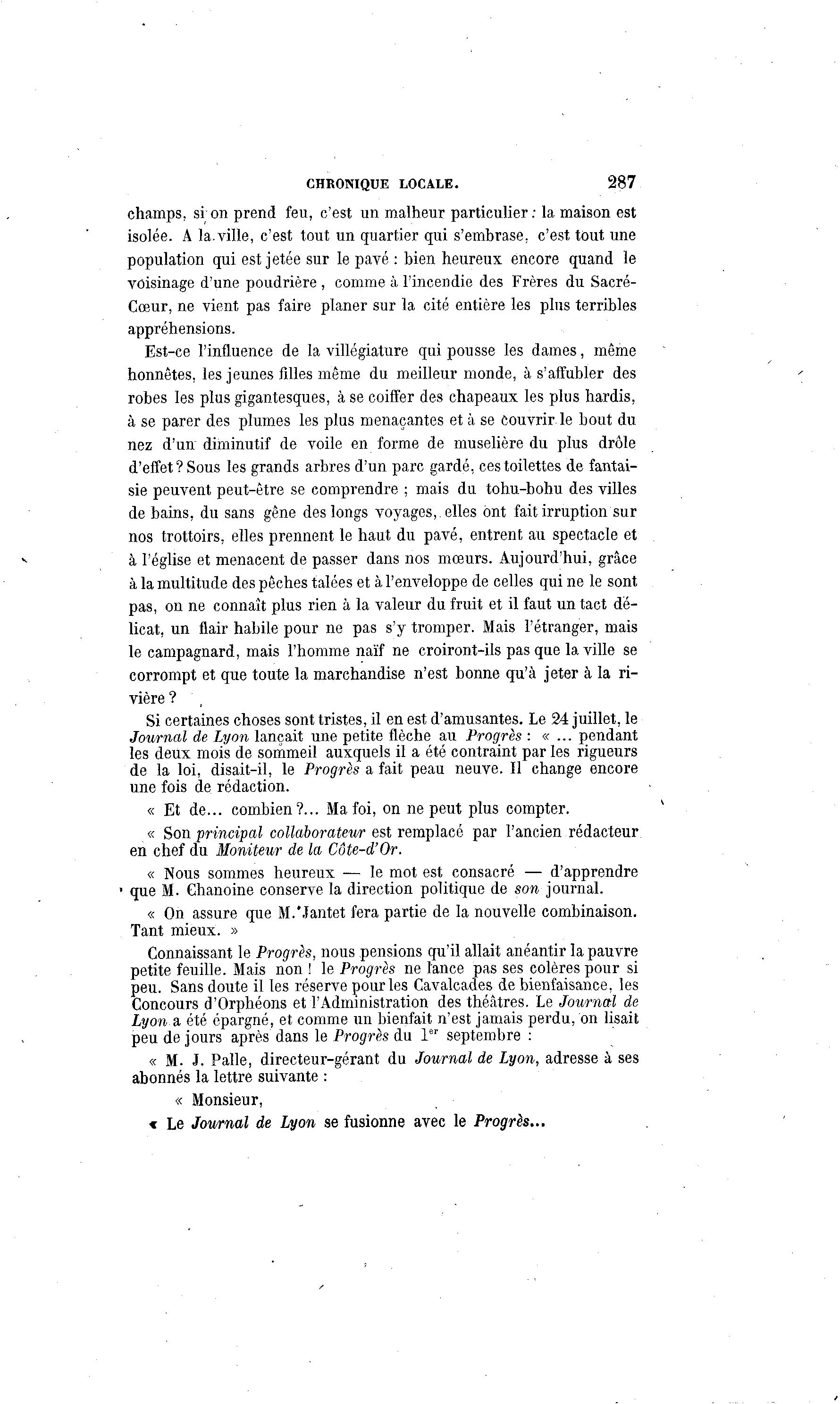 Journal de Lyon lançait une petite flèche au Progrès : « . . . pendant