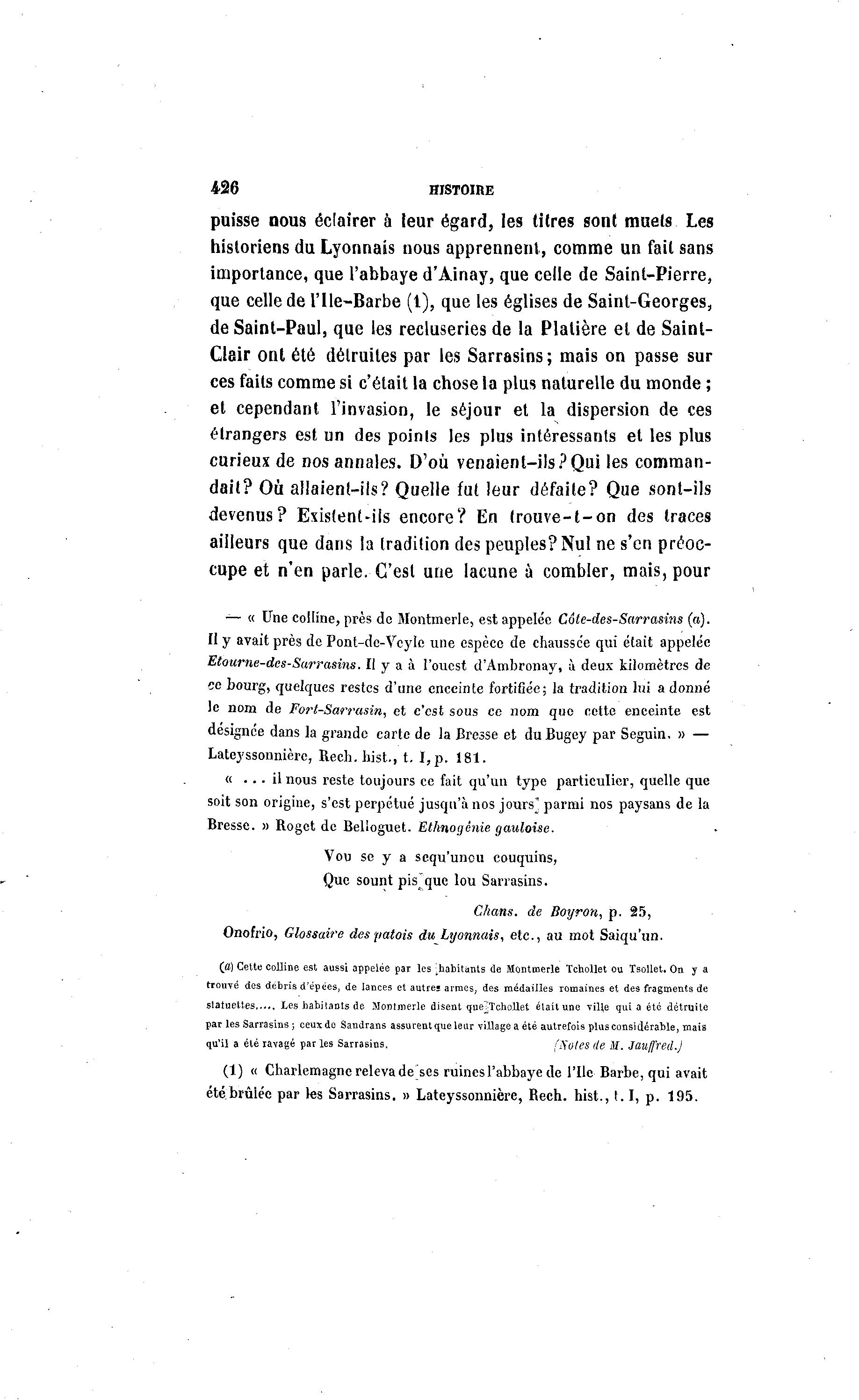 étébrûiée par les Sarrasins. » Lateyssonnière, Rech. hist., 1.1, p. 195.