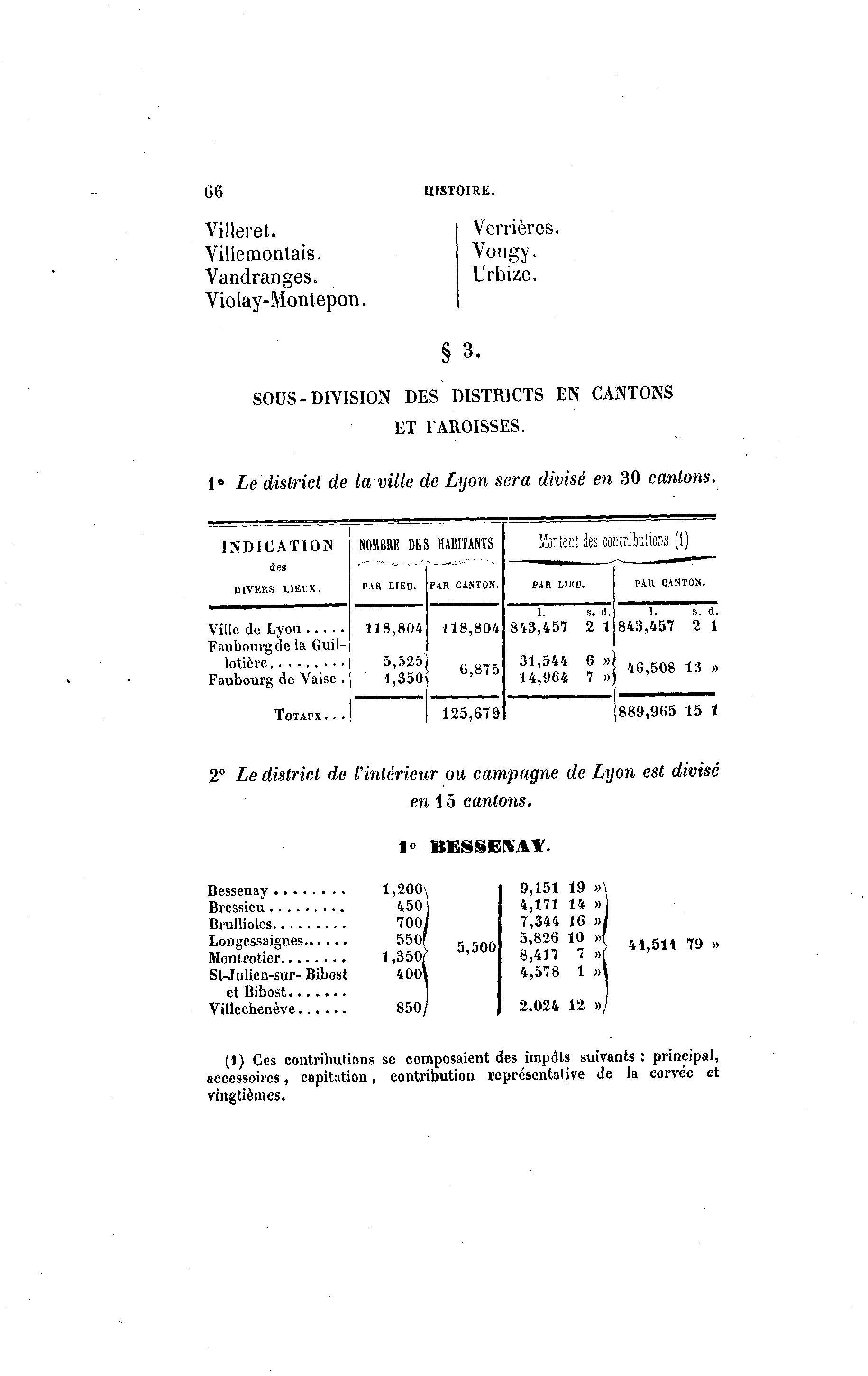 2° Le district de l'intérieur ou campagne de Lyon est divisé