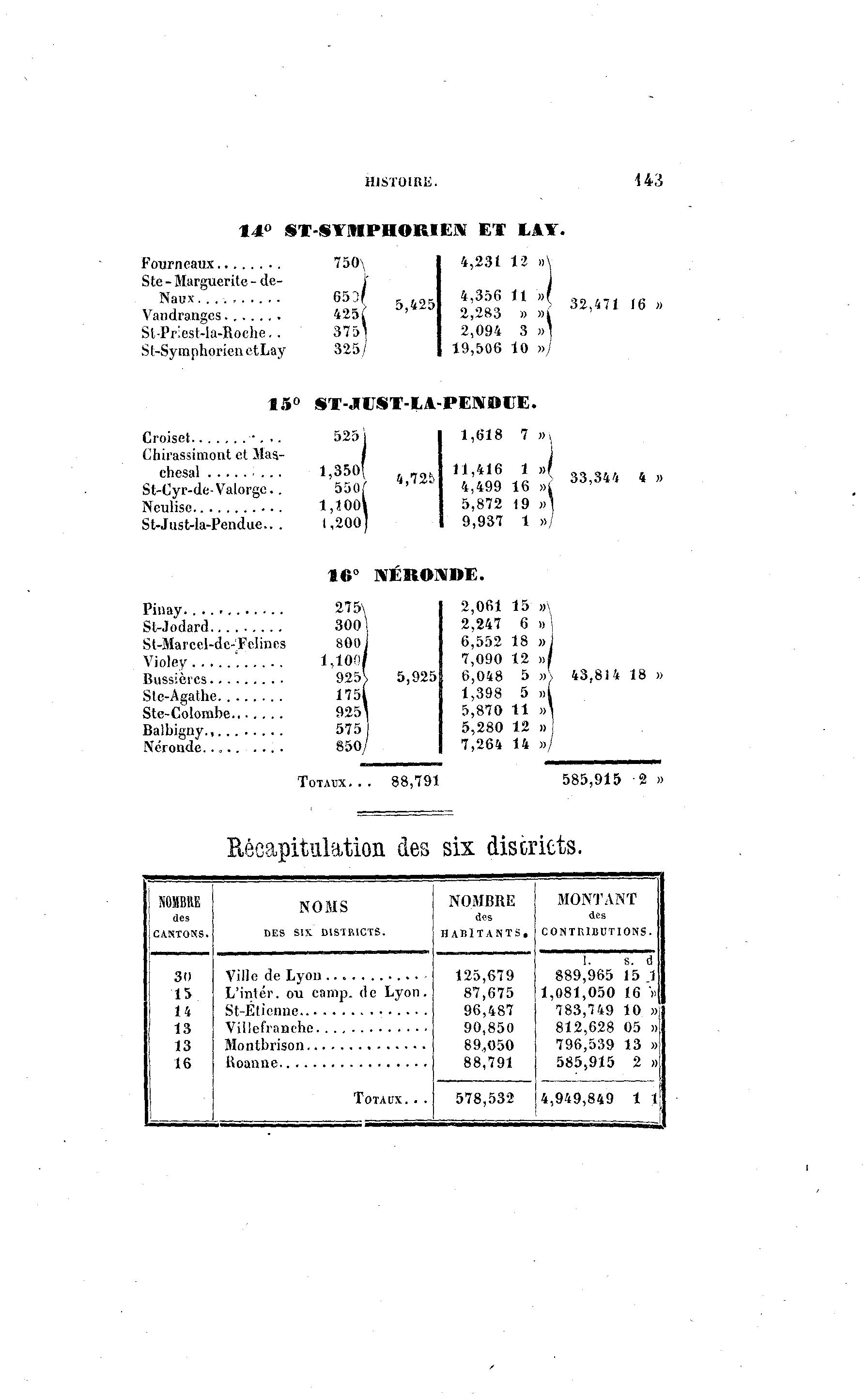 15 L'intér. ou camp, de Lyon. 87,675 1,081,050 16 '»