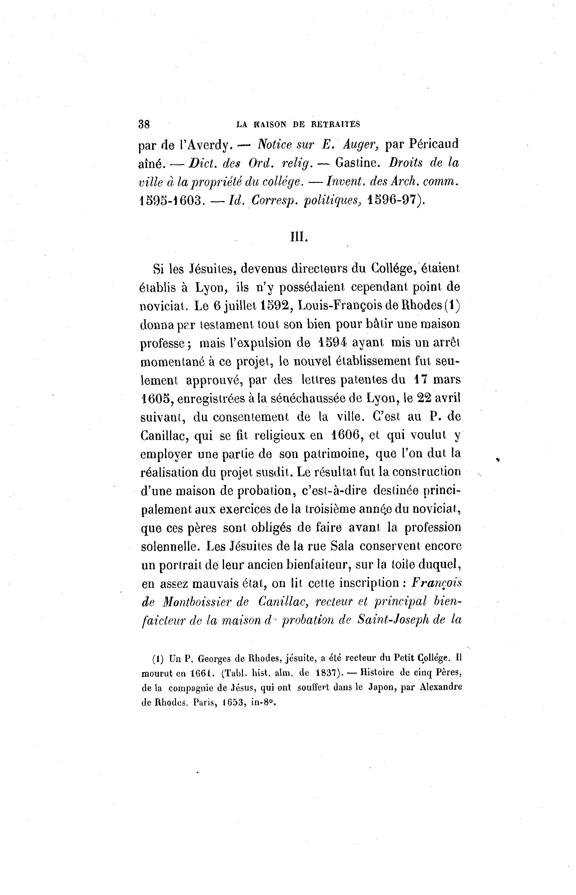 (I) Un P. Georges de Rhodes, jésuite, a été recteur du Petit Collège. Il