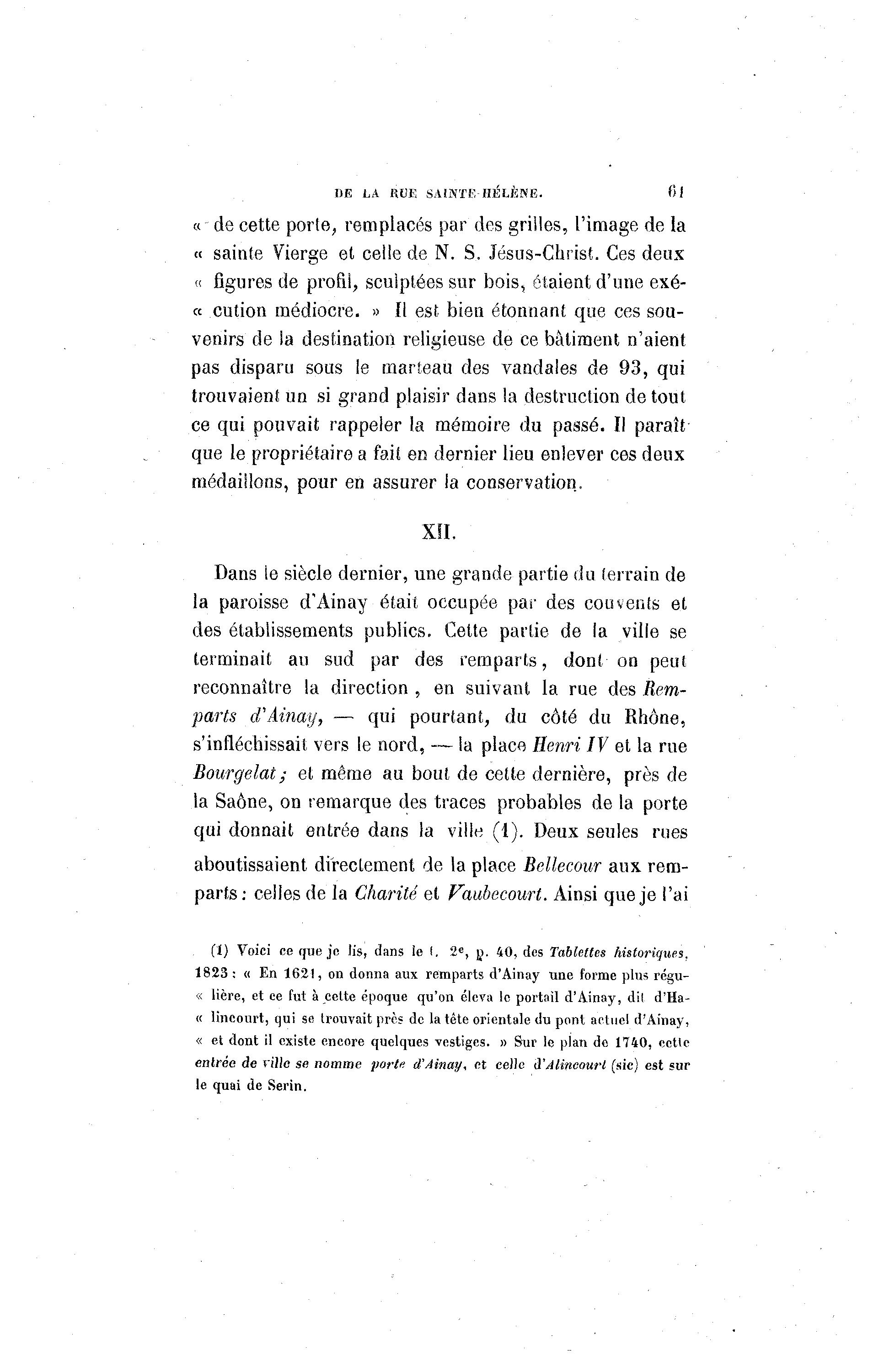 1823 : « En 162!, on donna aux remparts d'Ainay une forme plus régu-
