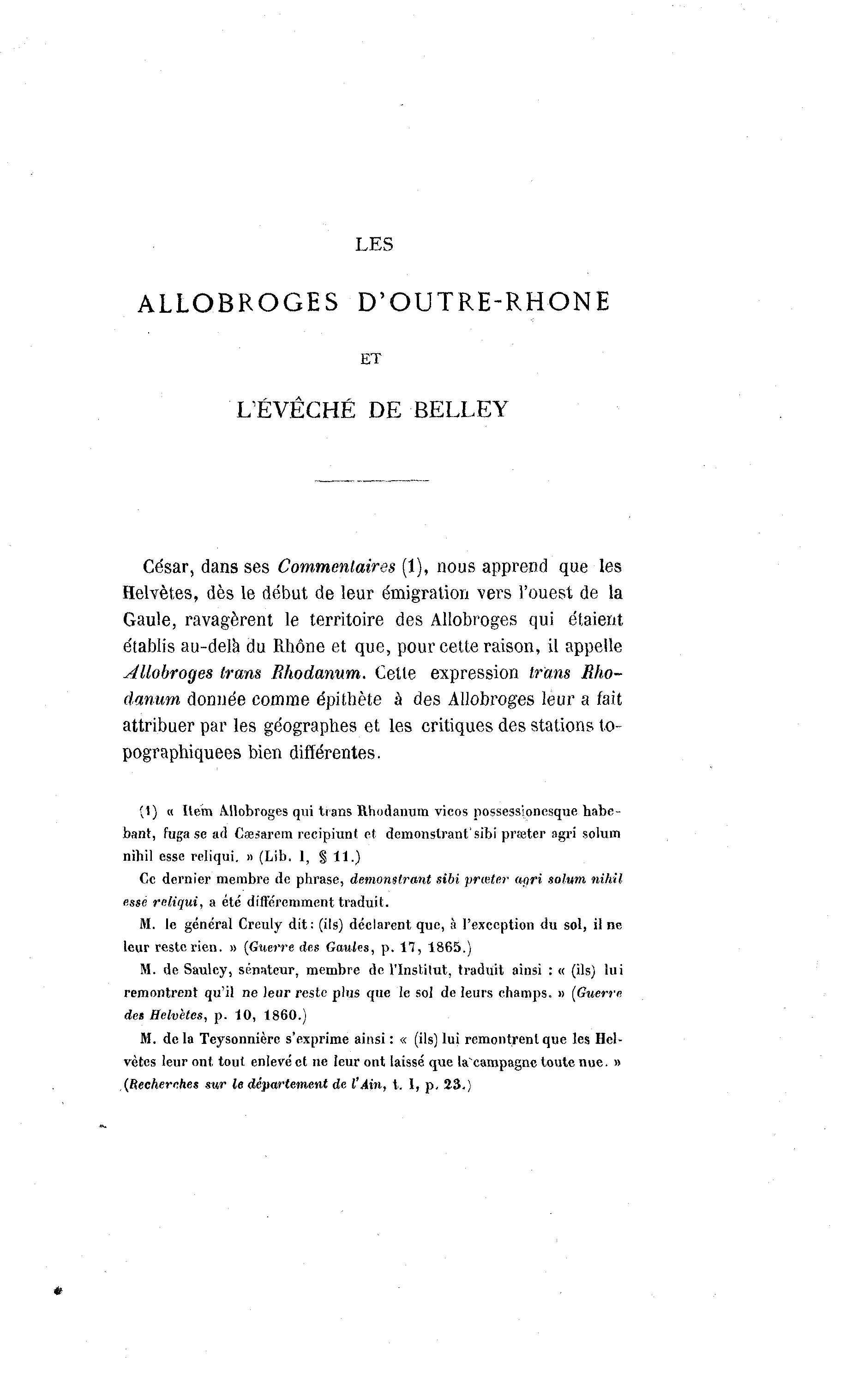 (1) « Ilem allobroges qui trans Rhodanum vicos possessionesque habe-