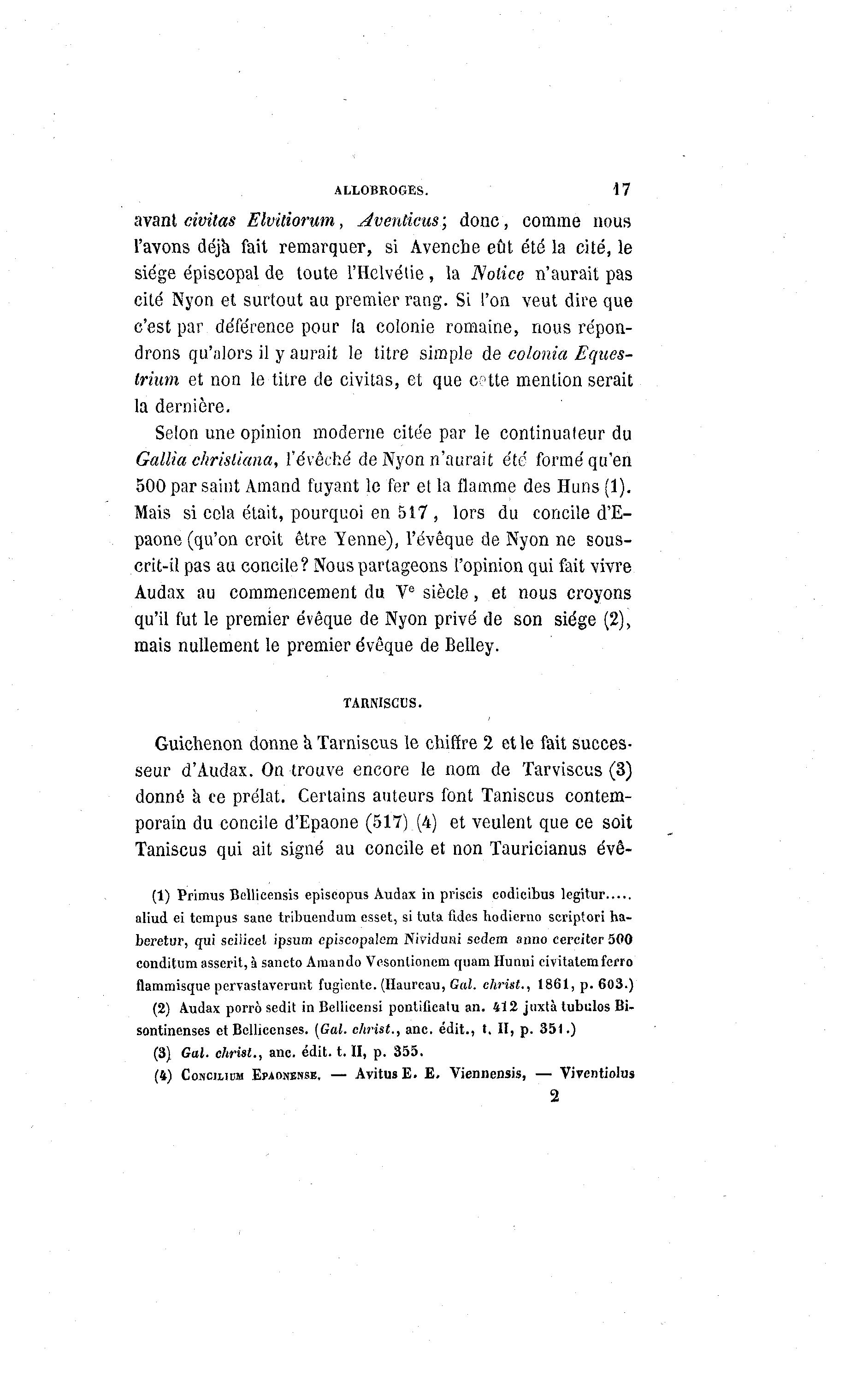 Gallia chrisliana, l'évêché de Nyon n'aurait été formé qu'en