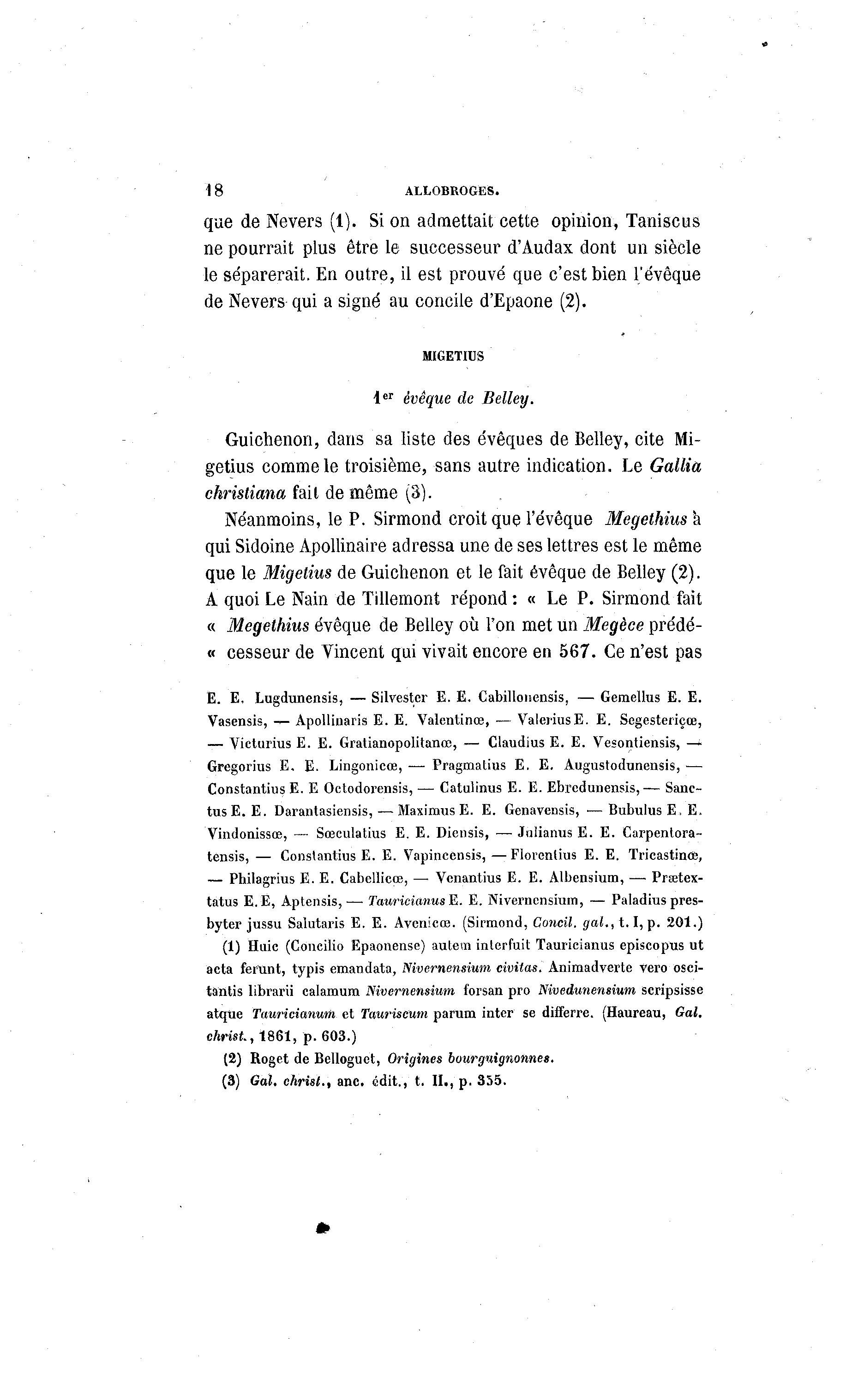 que le Migetius de Guichenon et le fait évêque de Belley (2).
