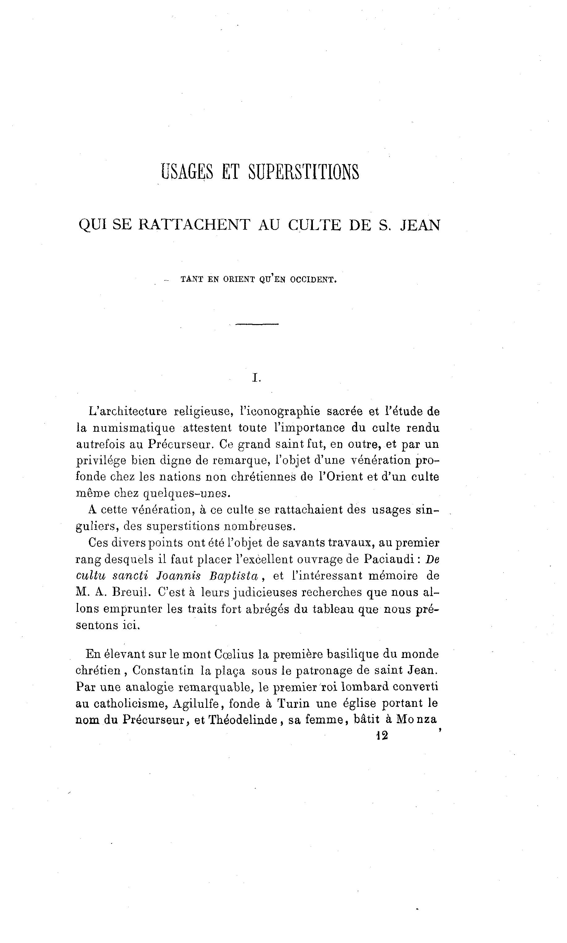 cultu sancti Joannis Baptista, et l'intéressant mémoire de