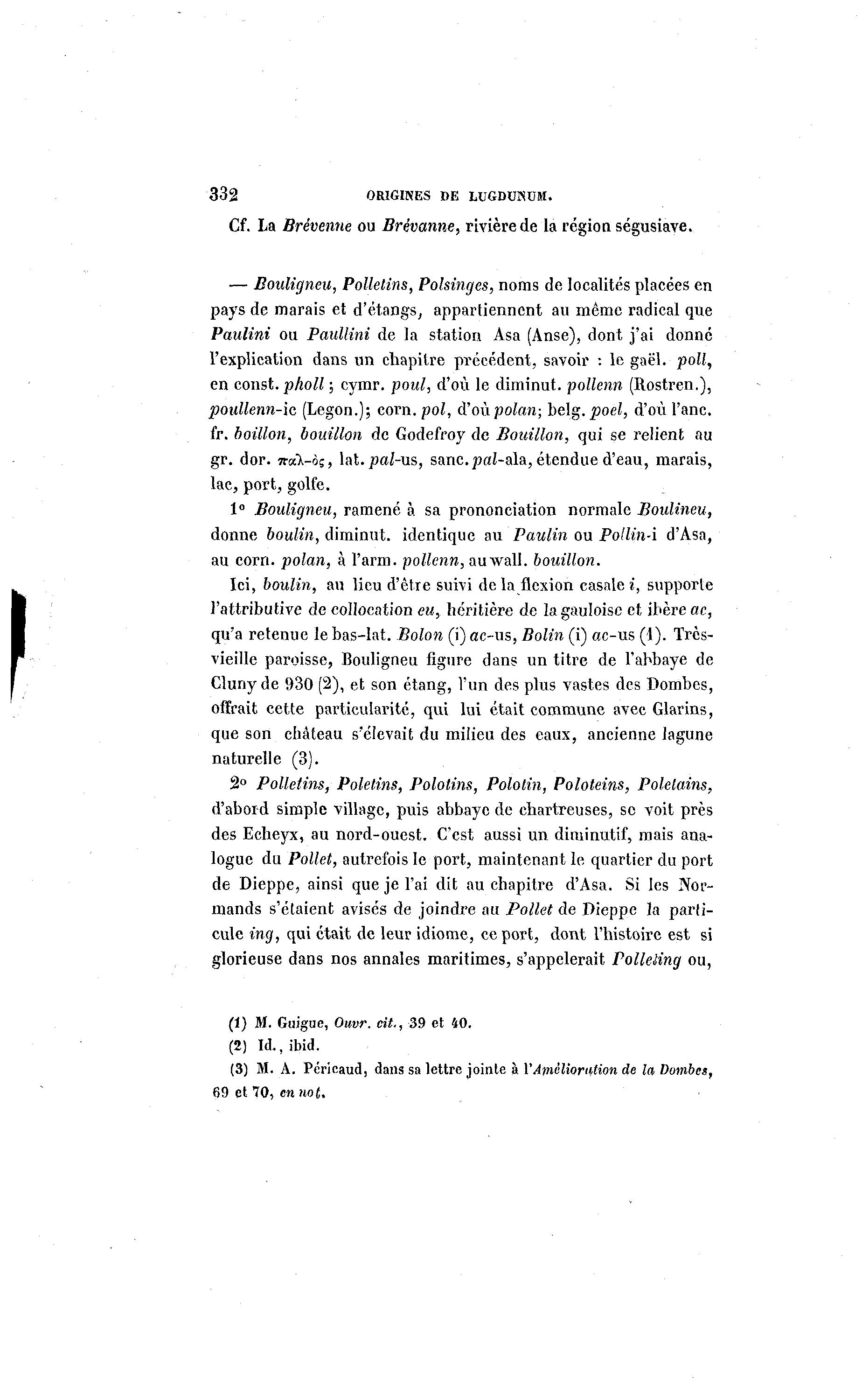 •— Bouligneu, Polletins, Polsinges, noms de localités placées en