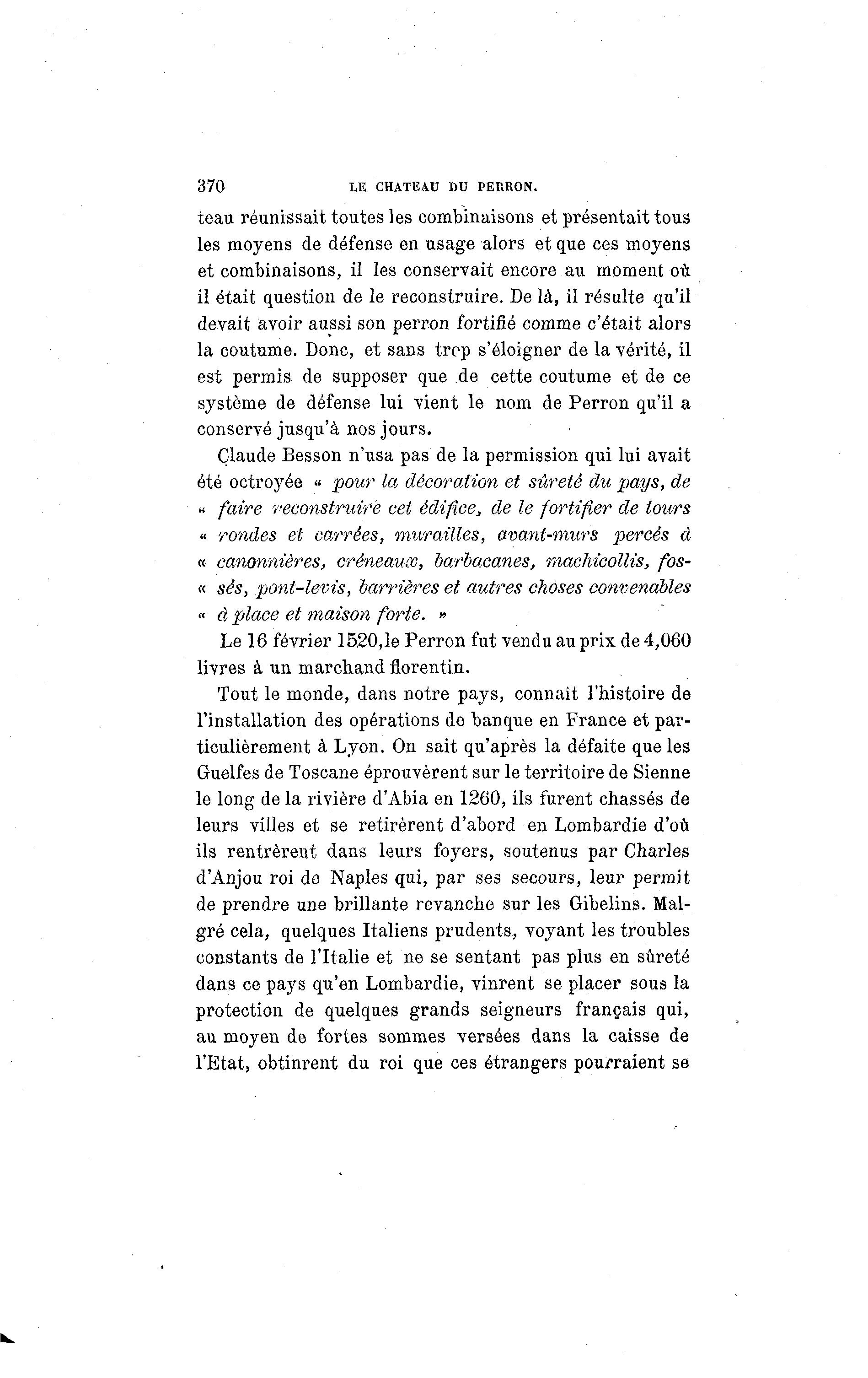 Le 16 février 1520,1e Perron fut vendu au prix de 4,060