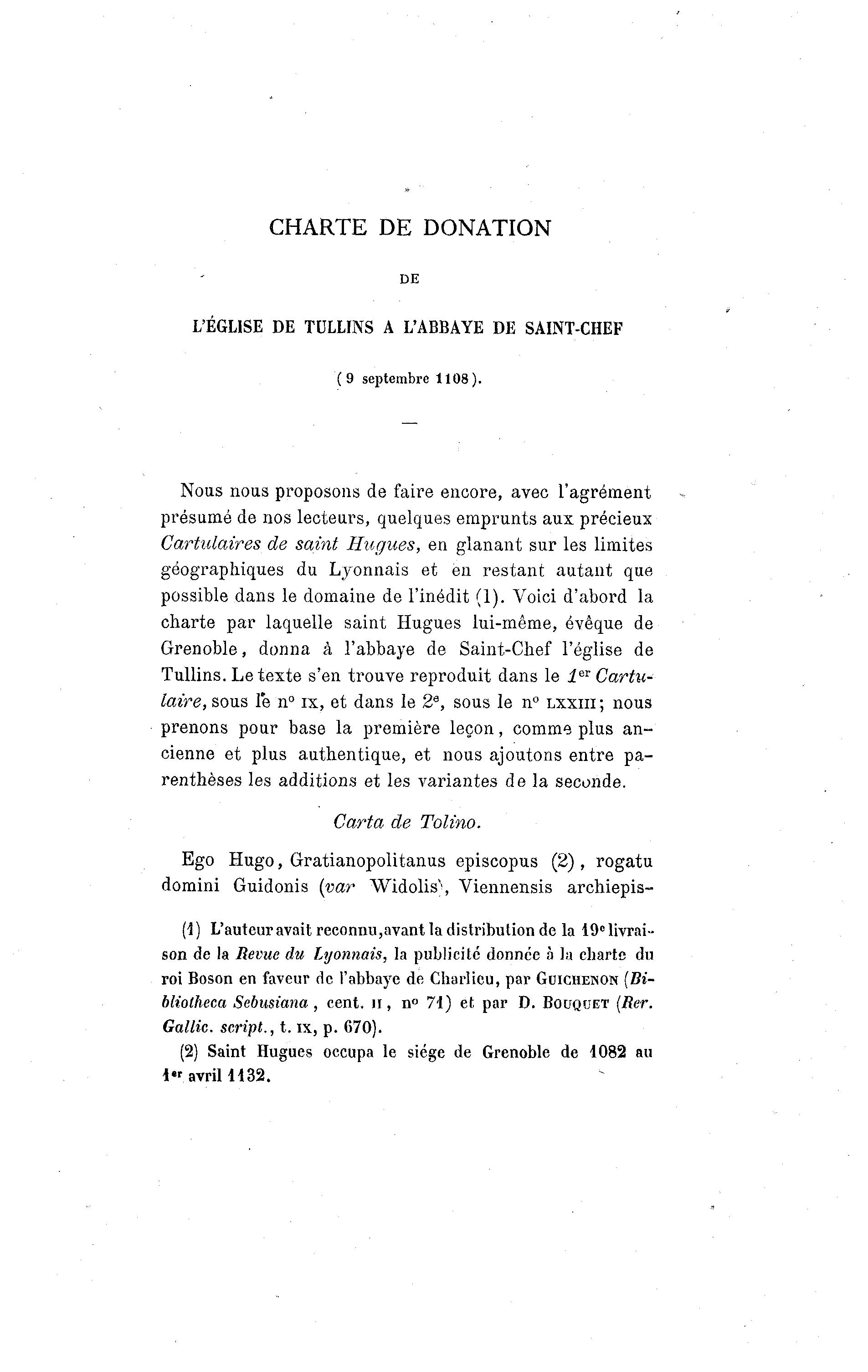Tullins. Le texte s'en trouve reproduit dans le i e r Cartu-