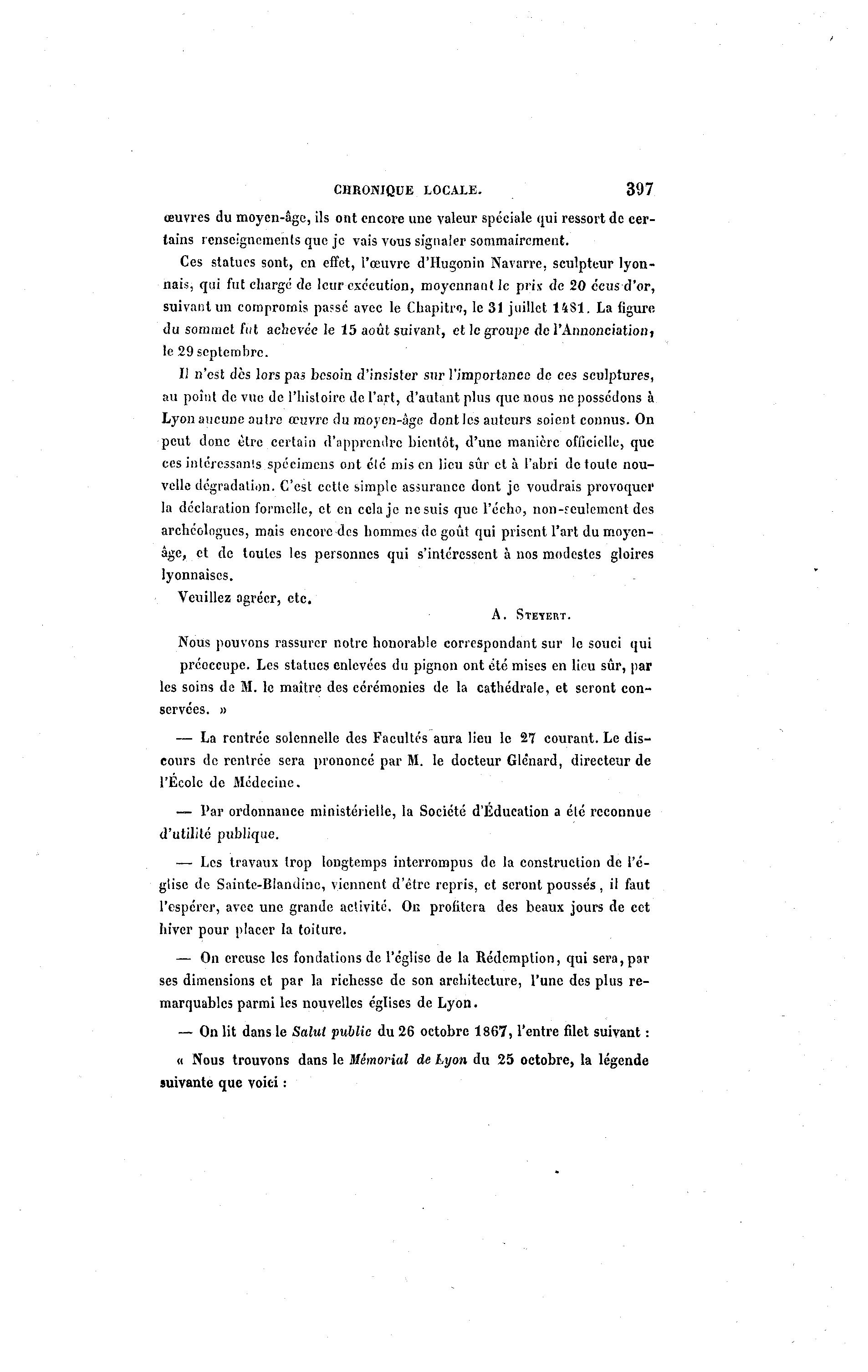 « Nous trouvons dans le Mémorial de i,yon du 25 octobre, la légende
