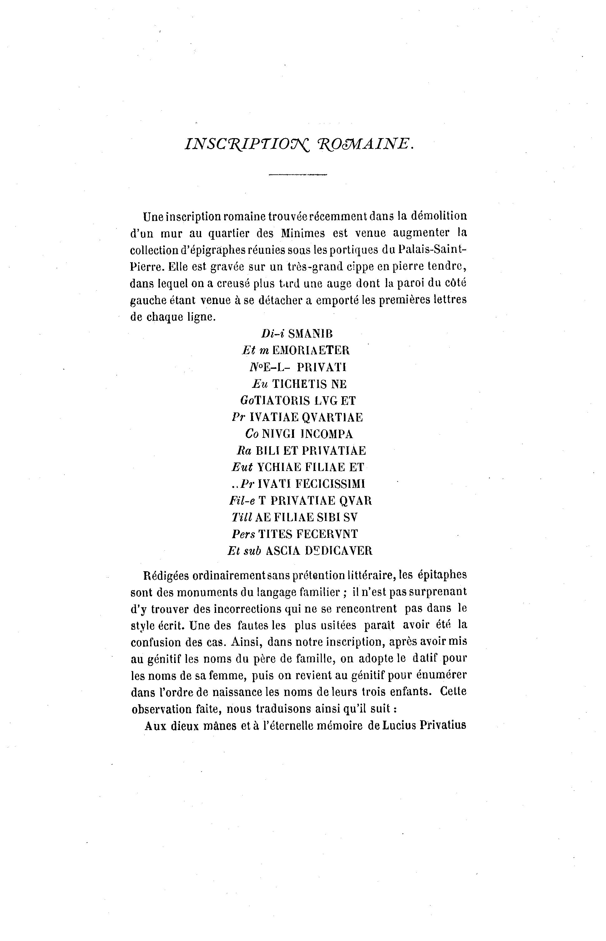 Aux dieux mânes et à l'éternelle mémoire deLucius Privatius