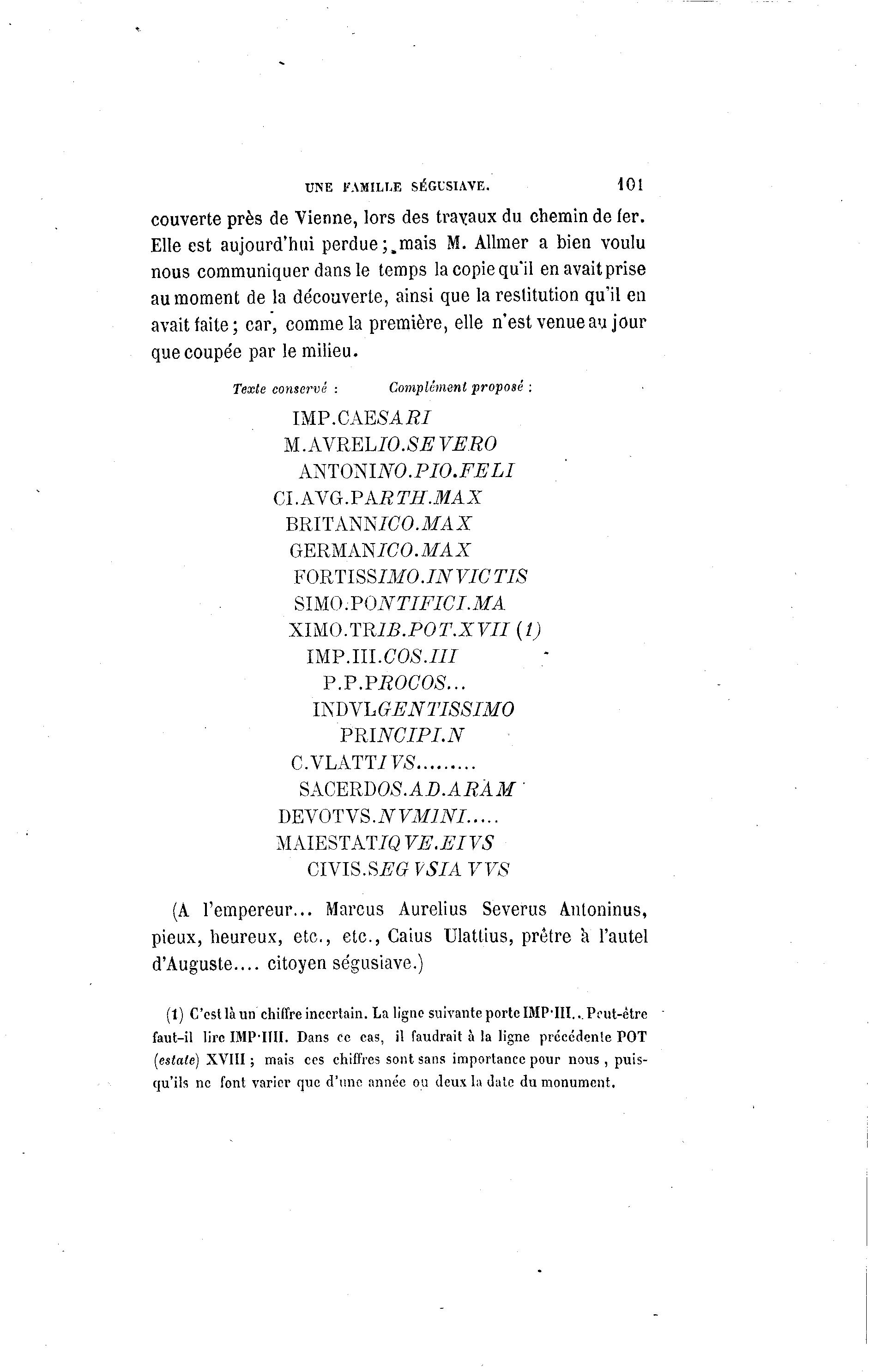 (1) C'est là un chiffre incertain. La ligne suivante porte IMP'III... Peut-être