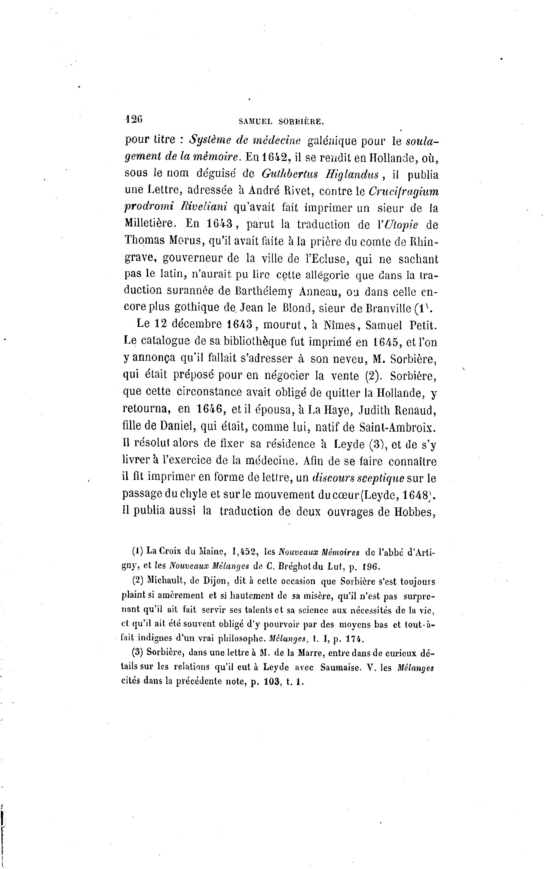 (2) Michault, de Dijon, dit à cette occasion que Sorbière s'est toujours
