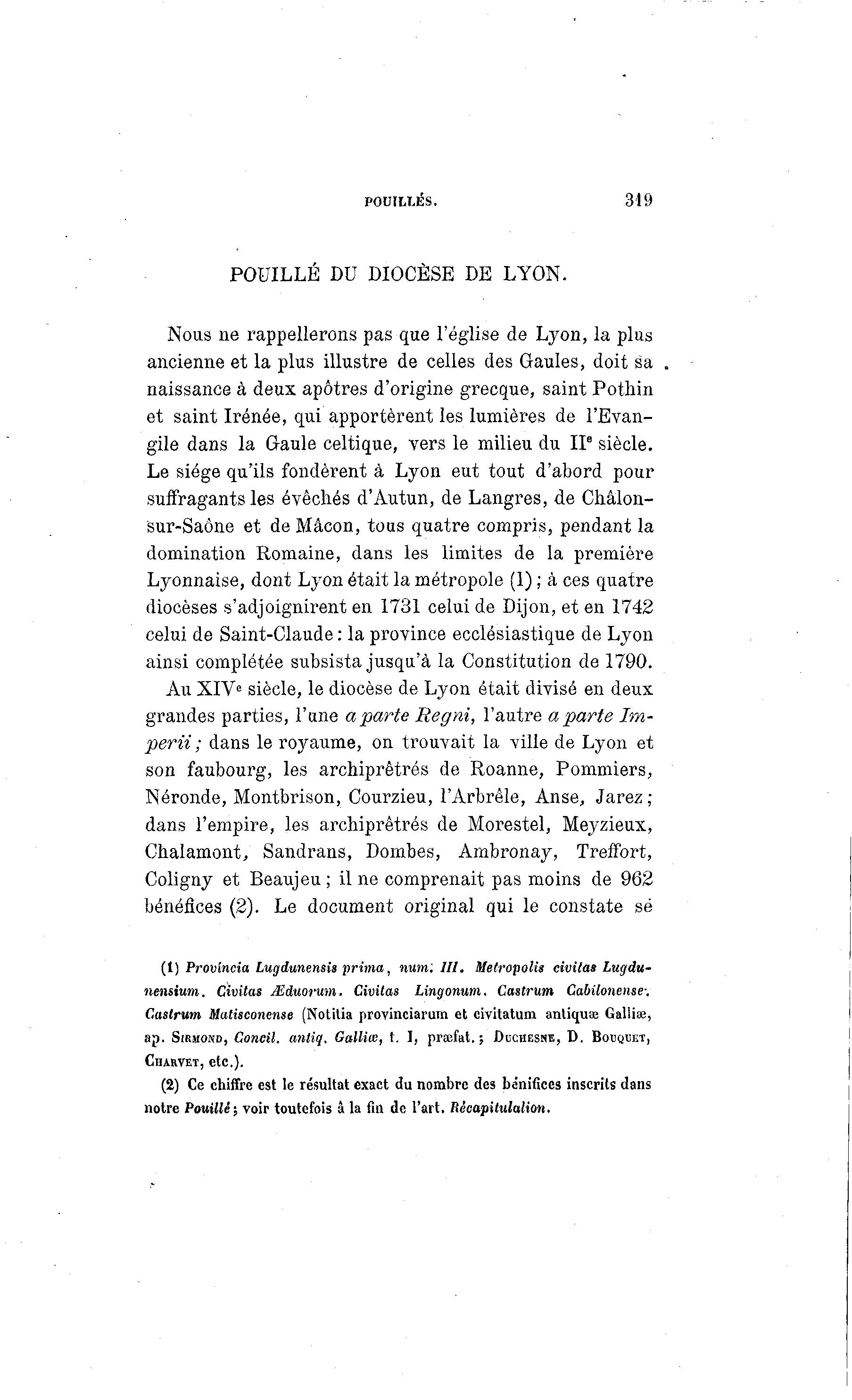 POUILLÉ DU DIOCÈSE DE LYON.