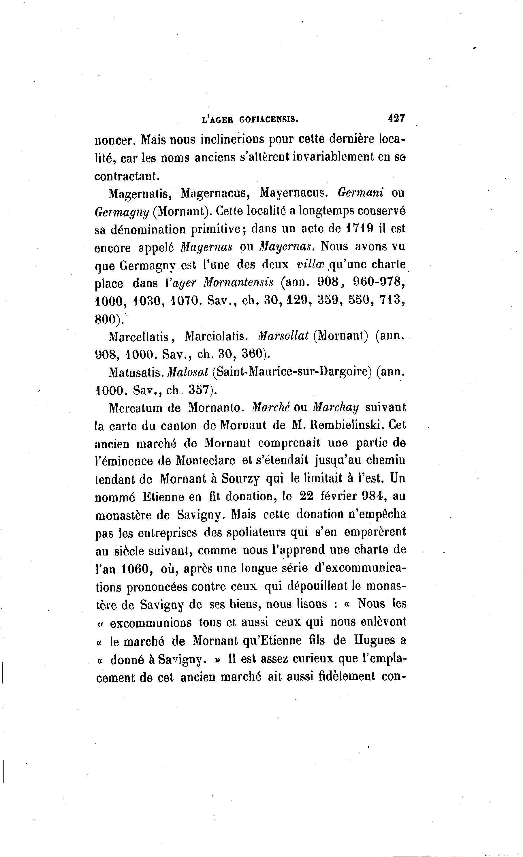 place dans Vager Mornantensis (ann. 908, 960-978,