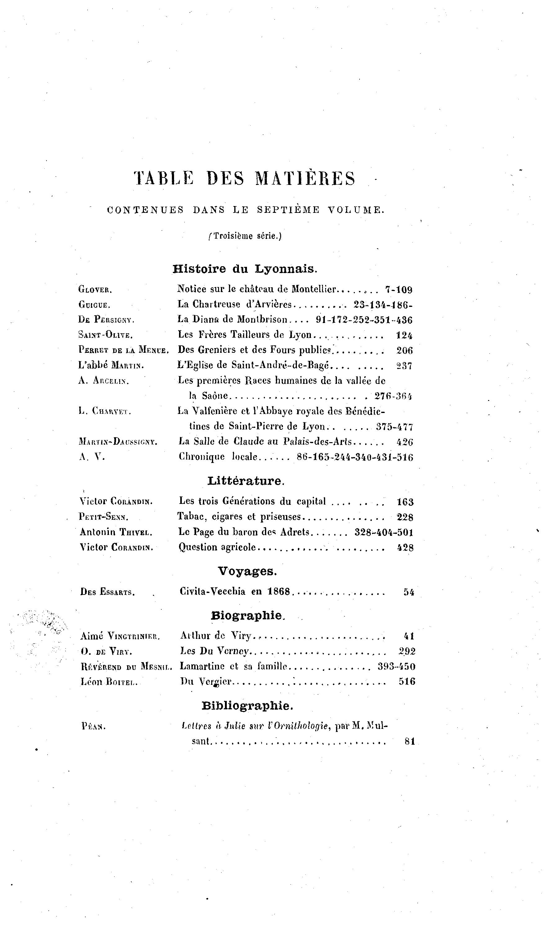 CONTENUES DANS L E S E P T I E M E VOLUME.