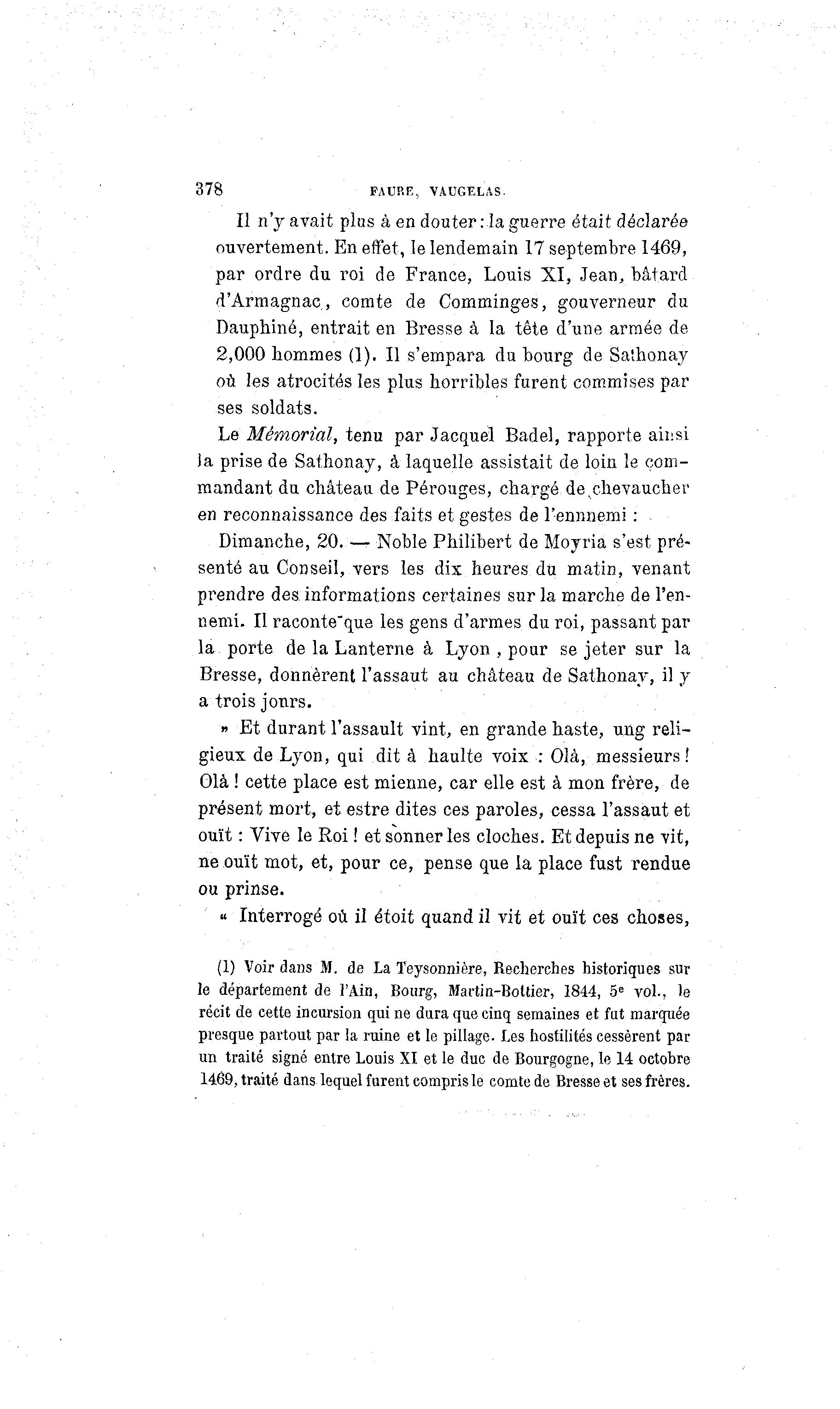 Bresse, donnèrent l'assaut au château de Sathonay, il y