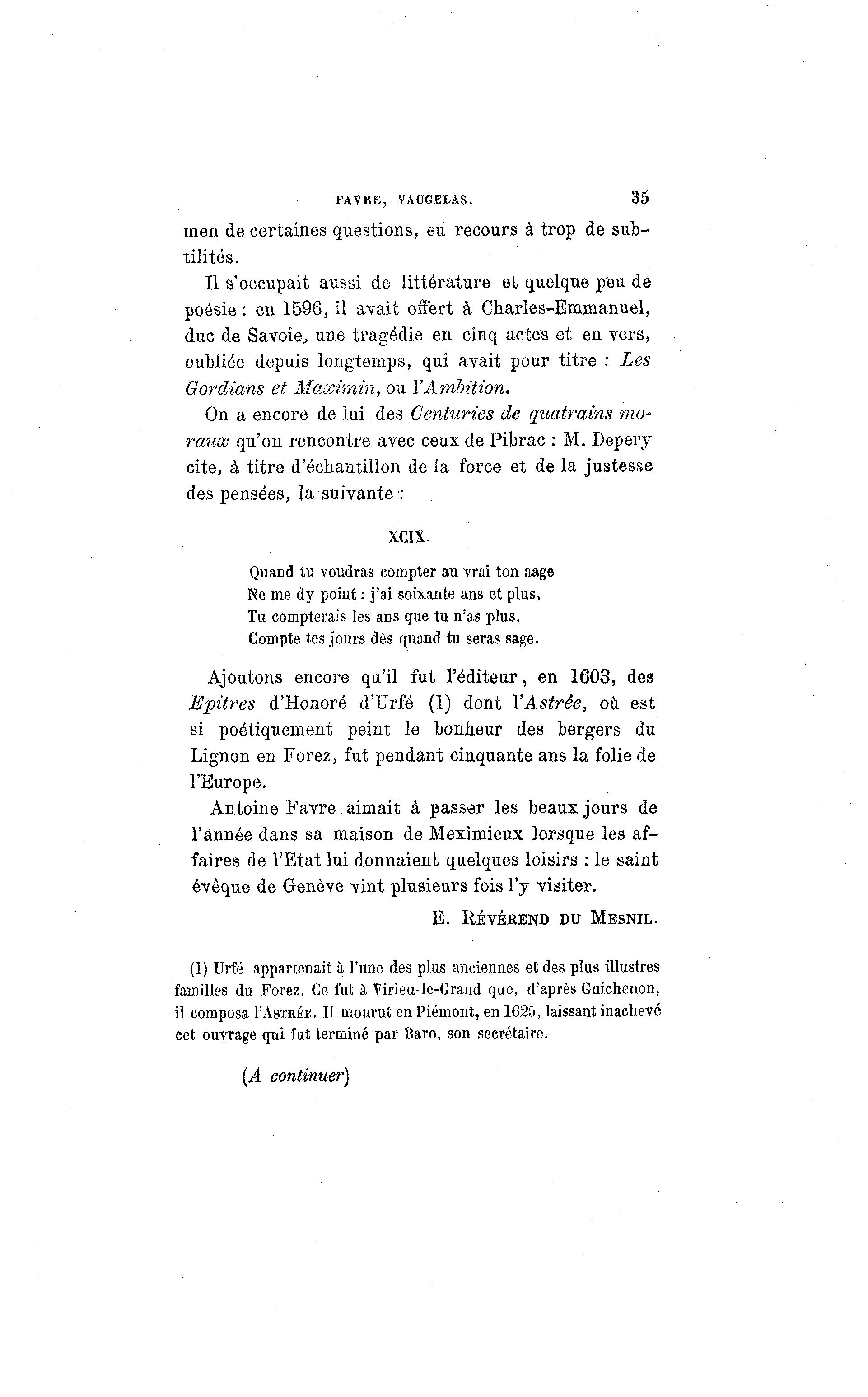 (1) Urfé appartenait à l'une des plus anciennes et des plus illustres